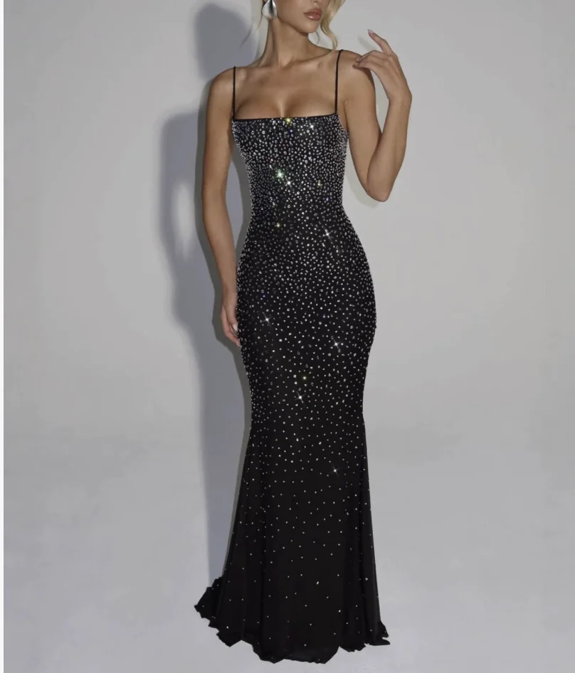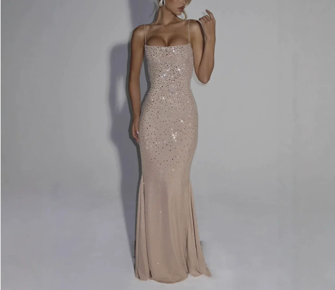 Women's Elegant Red Mermaid Sequin Evening Dress Sleeveless Floor Length Luxury Formal Prom Banquet Gown