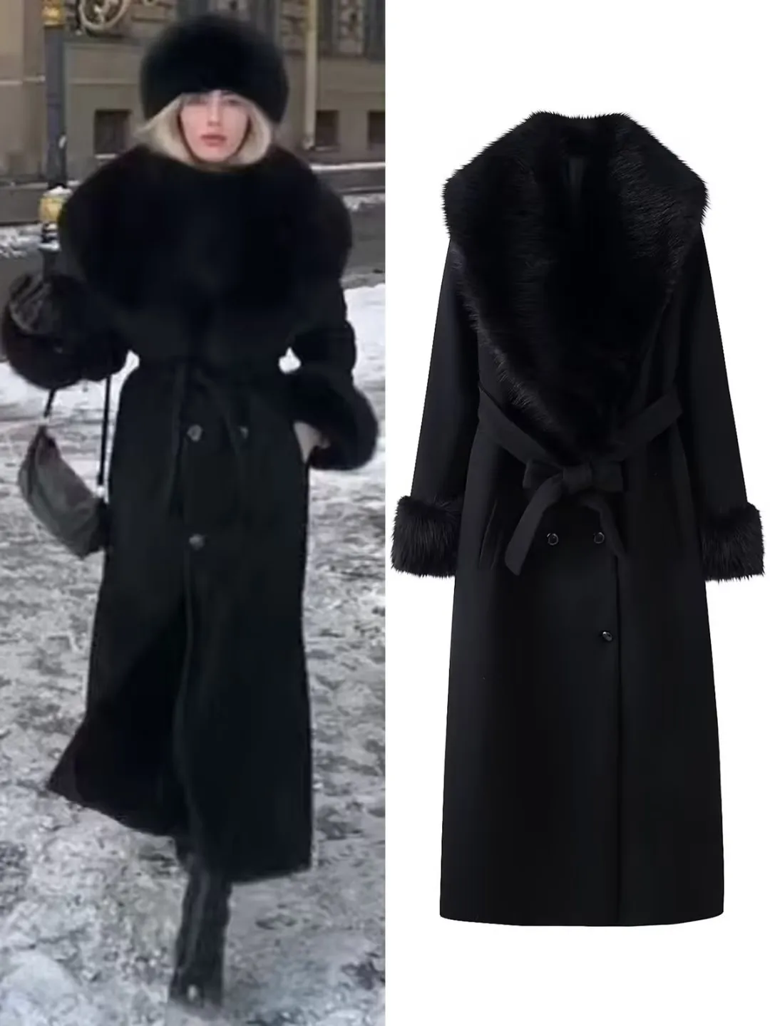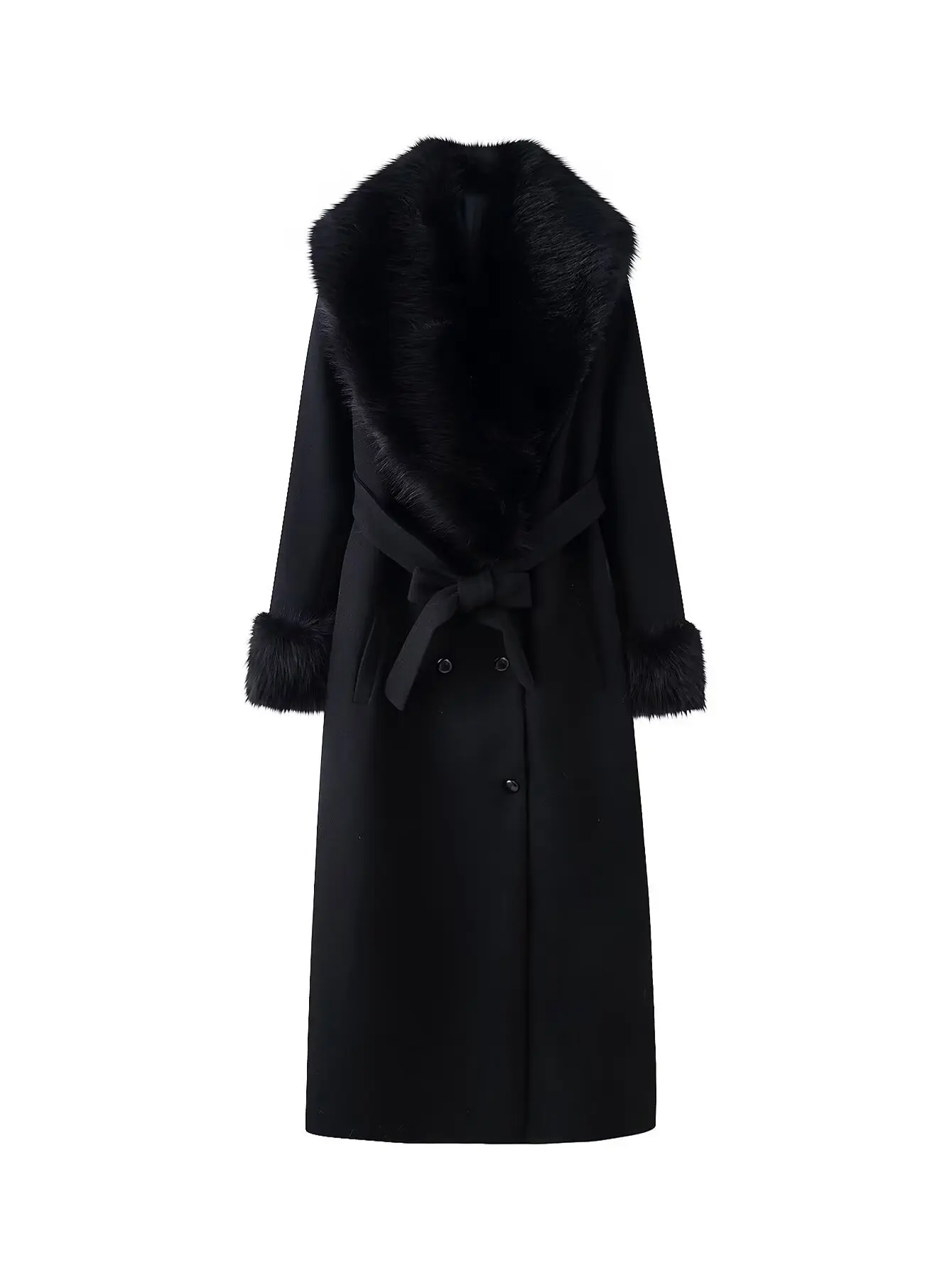 Stylish Women's Rich Black Blend Trench Coat High Quality Belt Cinch Waist Large for Spring
