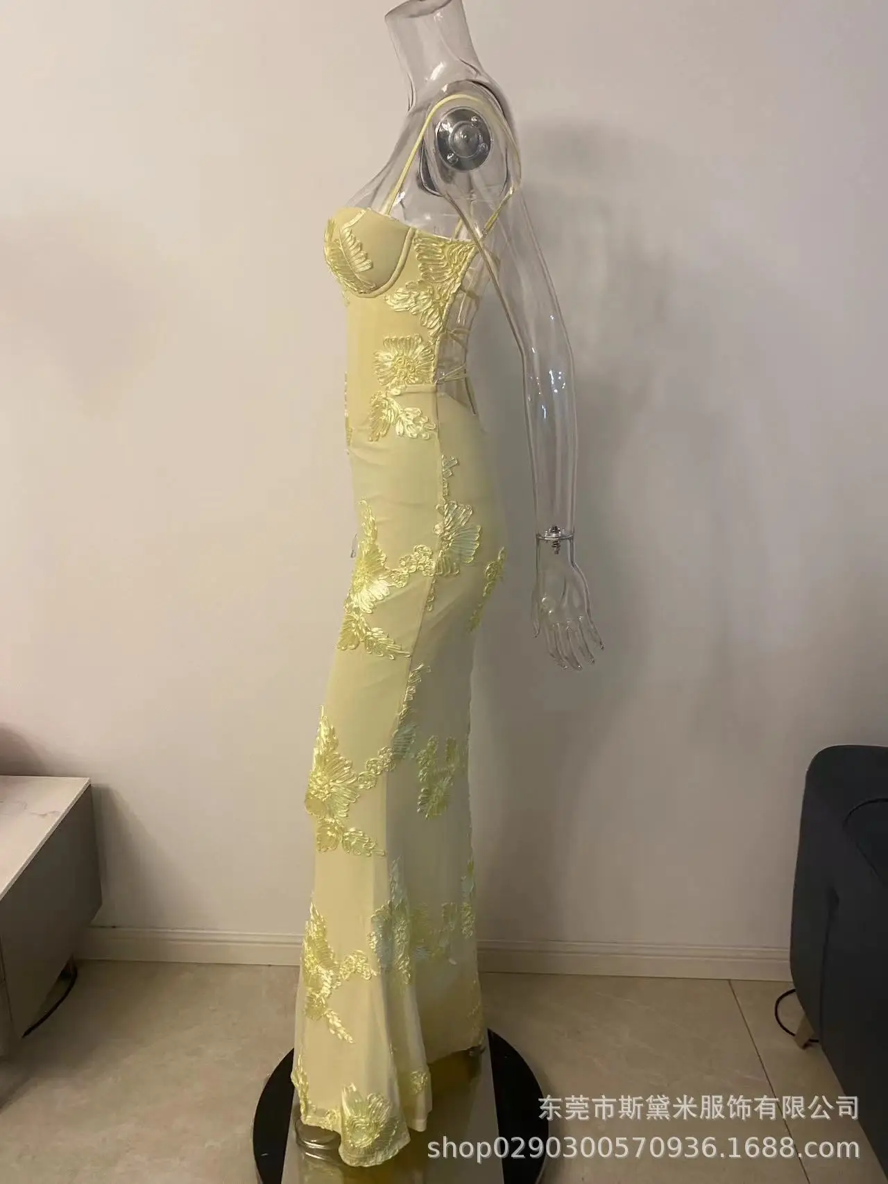 High Quality 2025 Summer Fashion New Arrival Best-selling Yellow Casual Dress Slim Elegant Long Dress