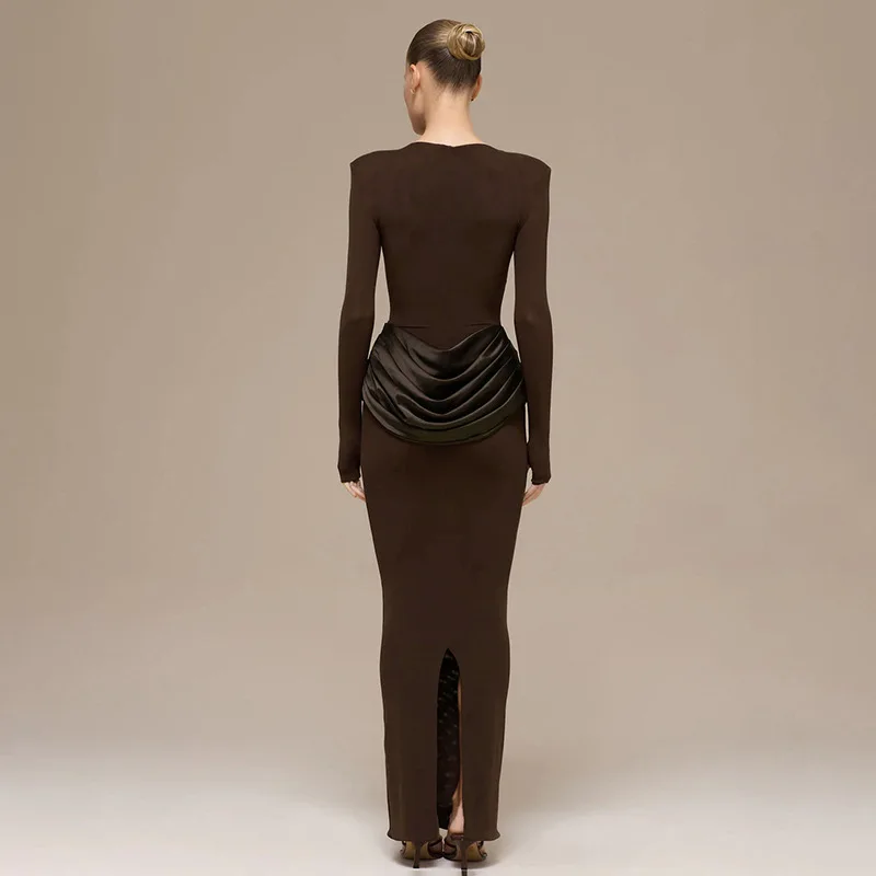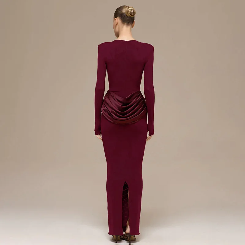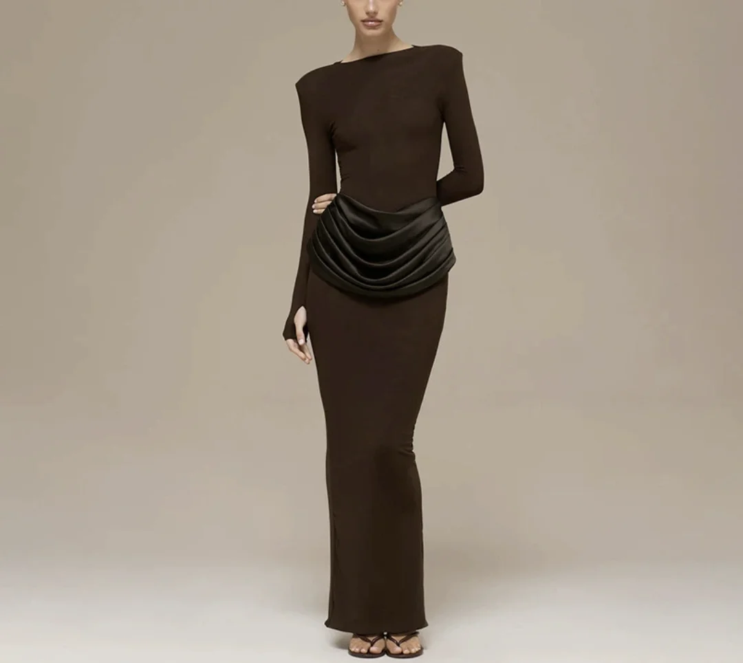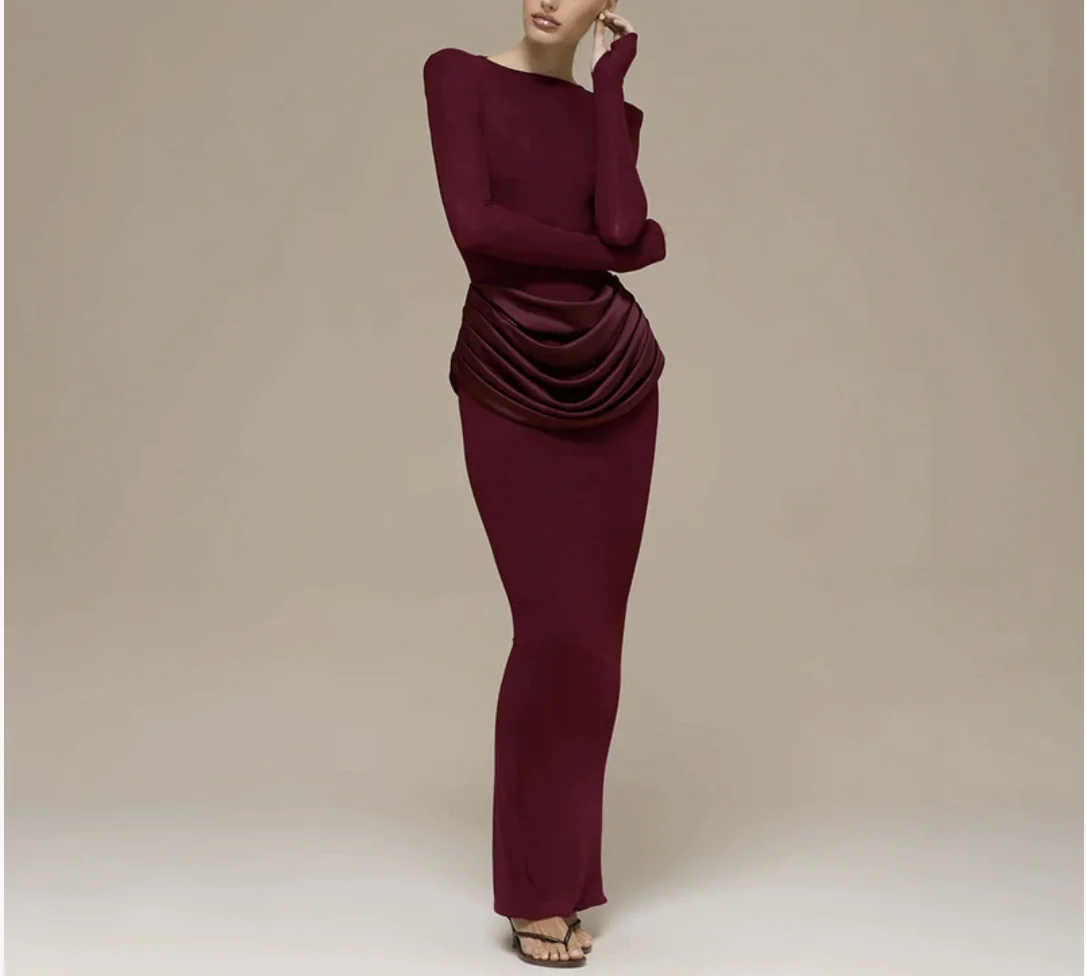 Women's 2026 New Spring Fashion Celebrity Style Elegant Solid Pleated Evening Dress Long Dress