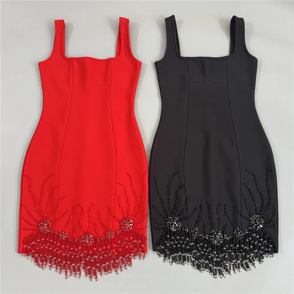 Women Celebrity Sexy Off Shoulder Pearl Red Mini Bandage Bodycon Dress Elegant Evening Club Party Dresses