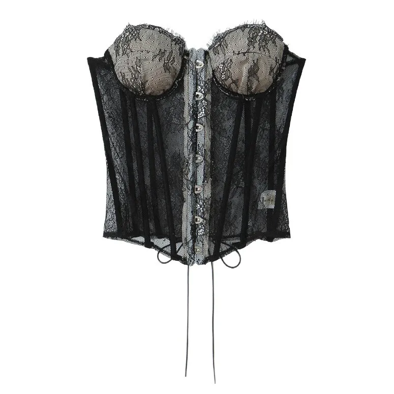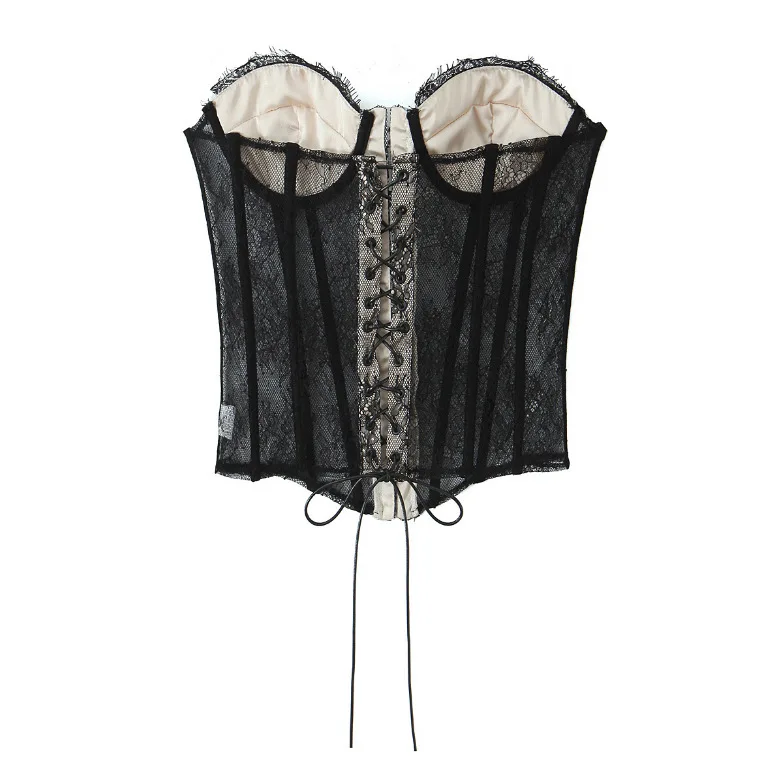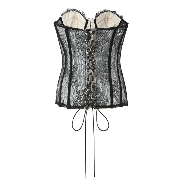 Lace Sexy Slim Waist Vest for Women 2025 Summer New American Style Spicy Girl Solid Color Bandage Tube Top