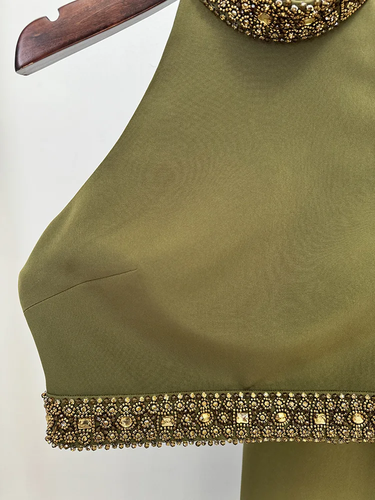New Women Sexytwo Piece Set Beading Tank Tops High Split Bodycon Long Skirts Elegant Evening Party Birthday Dress Vestido