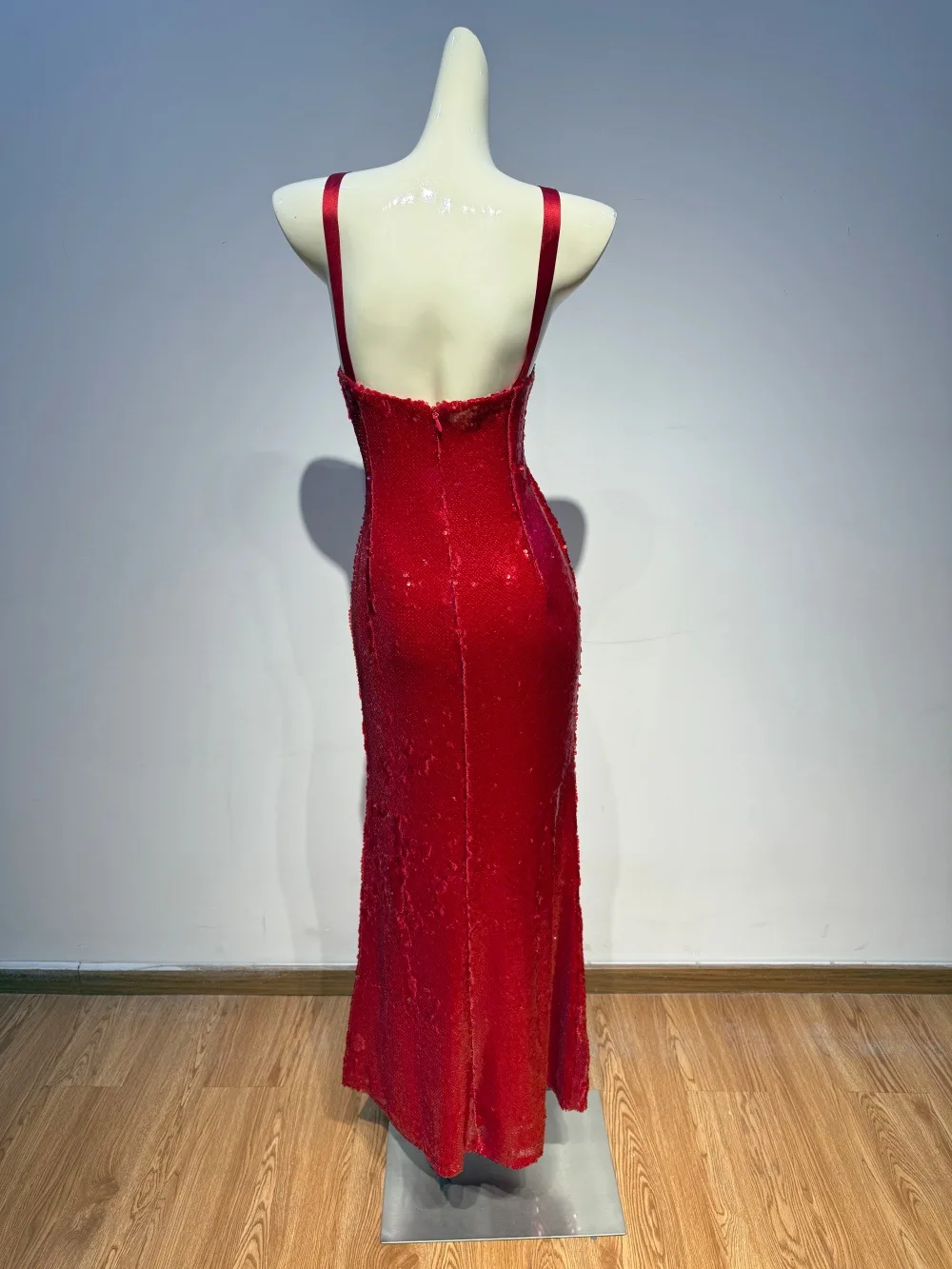 Cocktail Party Delicate Allure Sequin-Detailed Red Deep-V Strappy Backless Maxi Dress Fashion Sexy Evening Gown