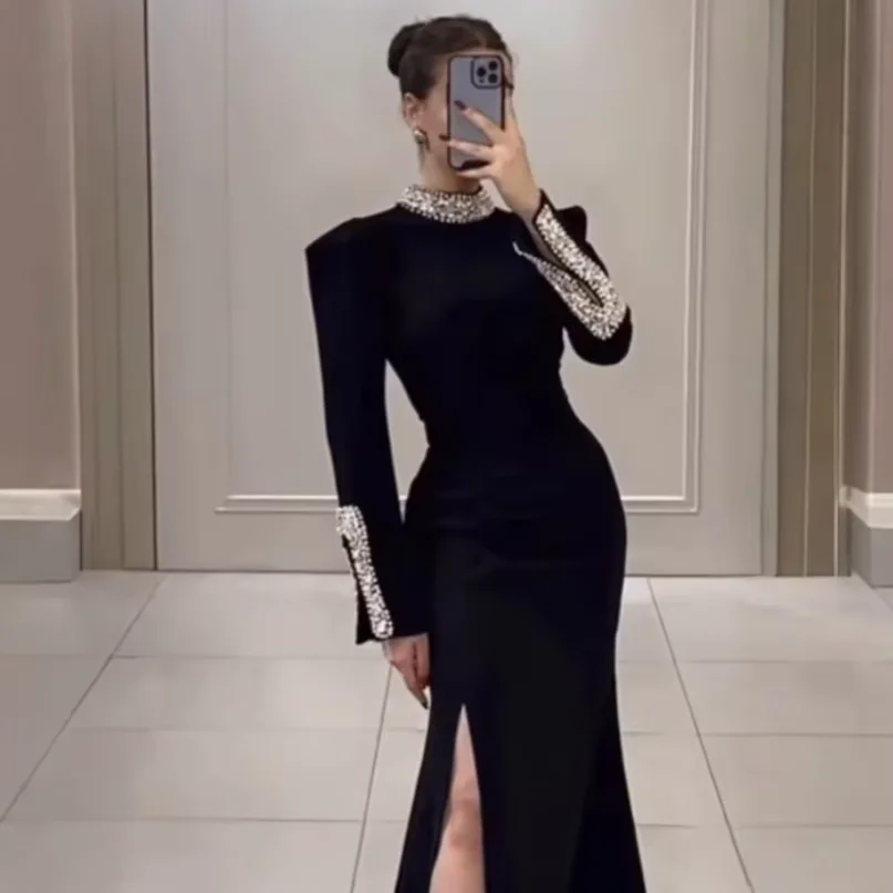 ZYHT 73902 Dark Green Blue Long Sleeve Simple Elegant Evening Dress Customize High End Women Clothing Manufacturer