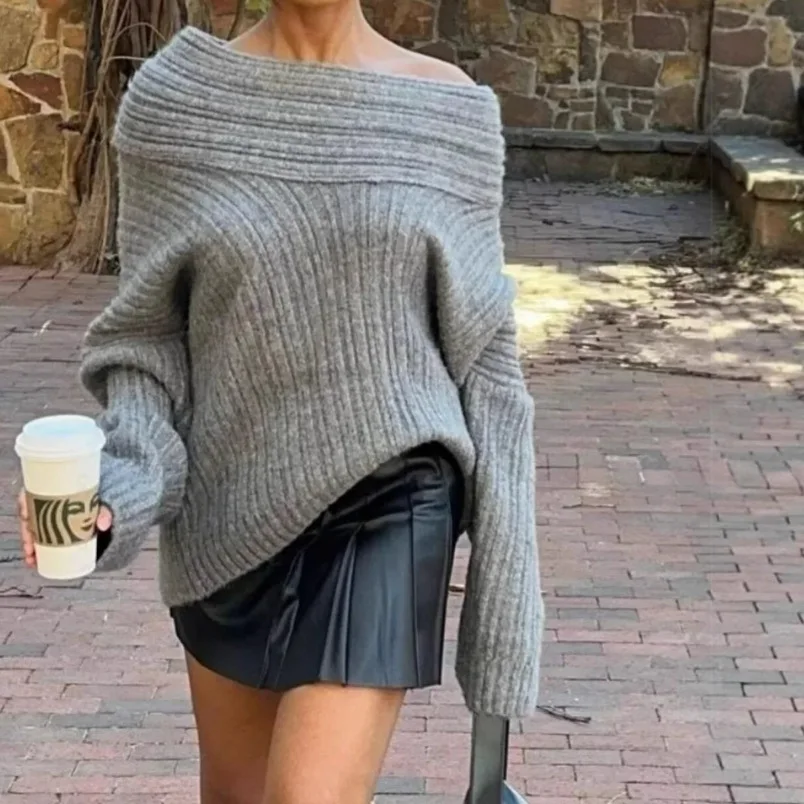 2026 Autumn Solid Color Loose Pullover Women's Elegant Fashion Off-Shoulder Knit Top Women Products Trending