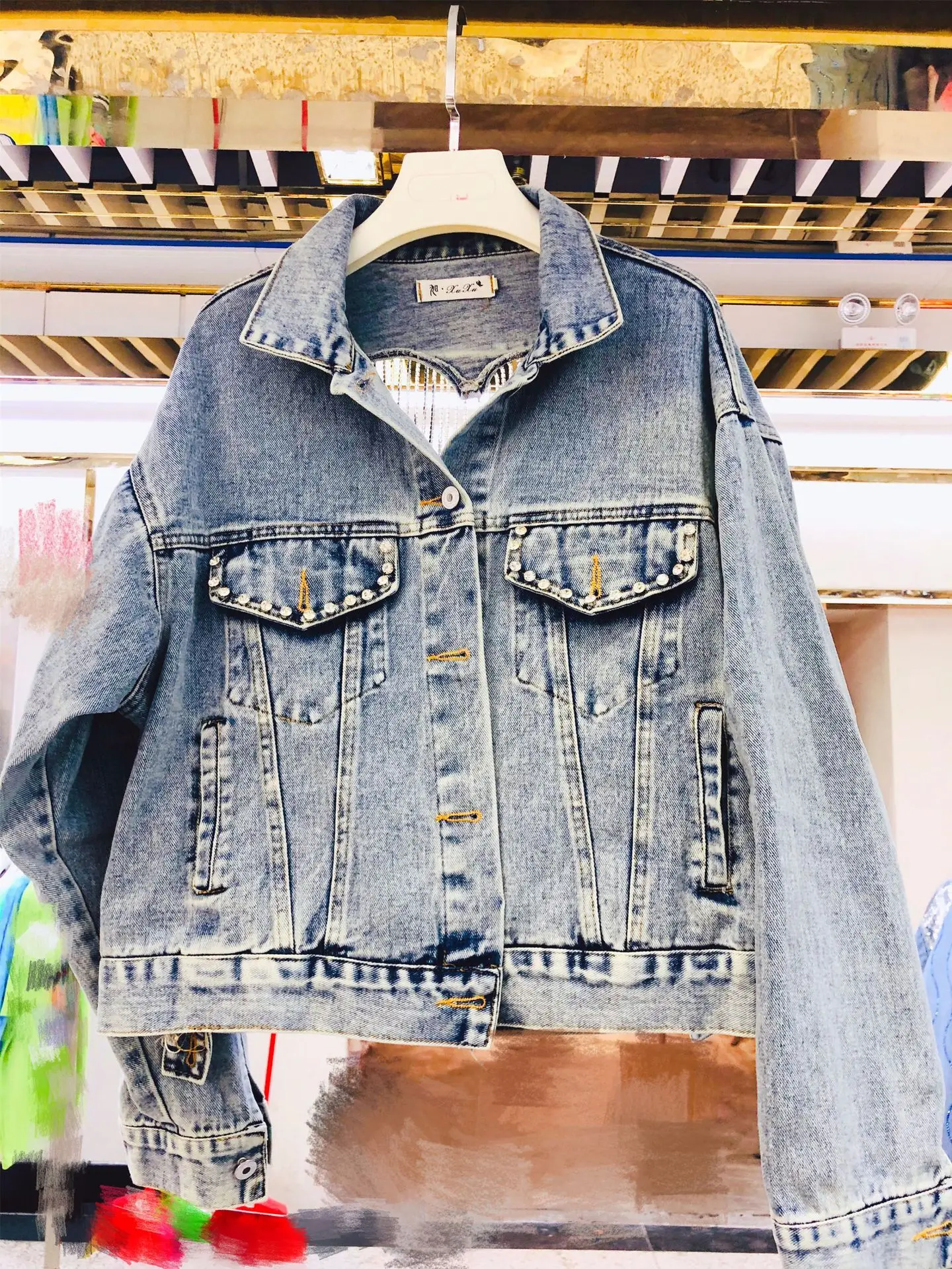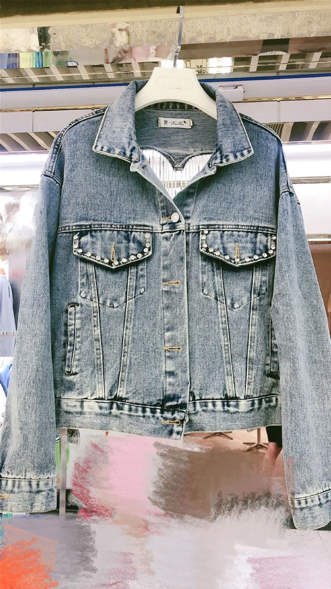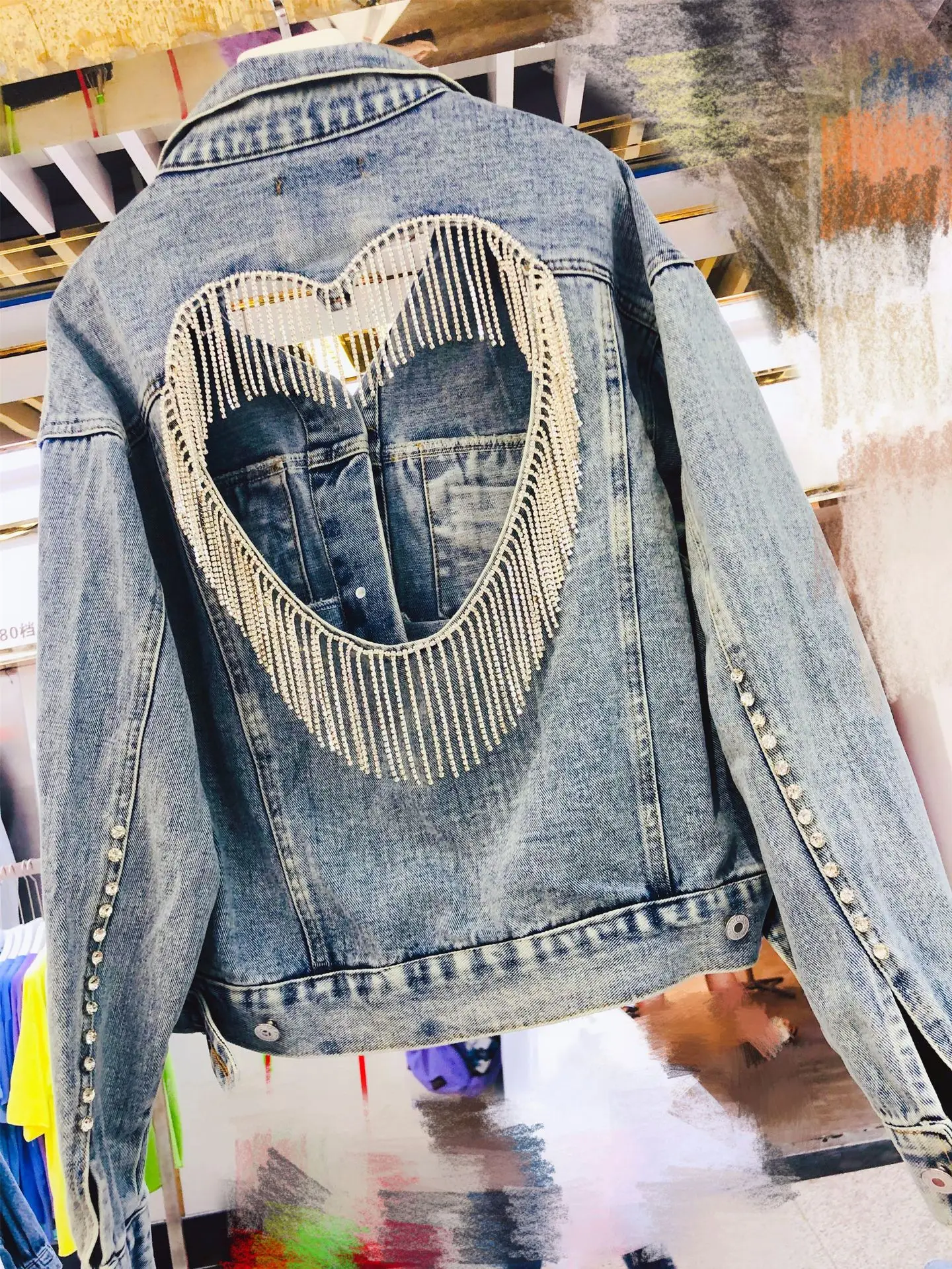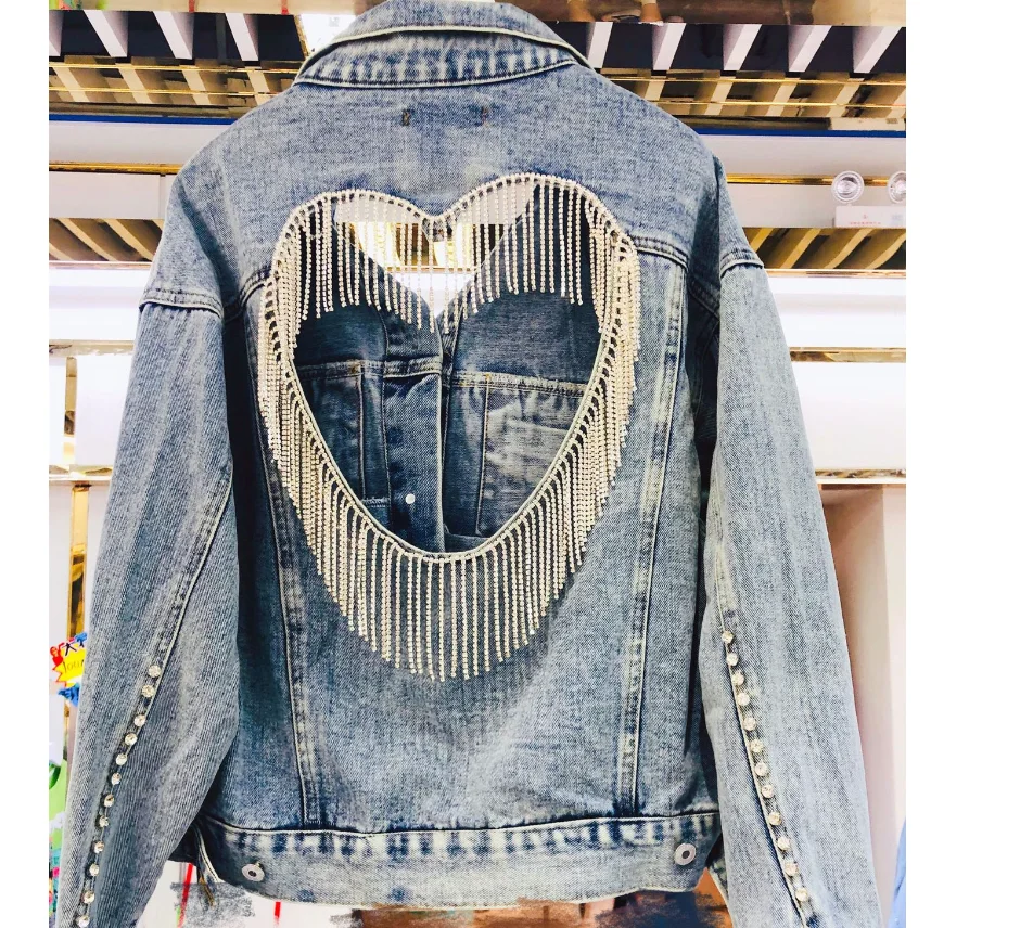 Denim Jacket Women's New Spring Fall 2023 Y2K Sequined Fringe Loose Slim Cropped Top Clothes Women