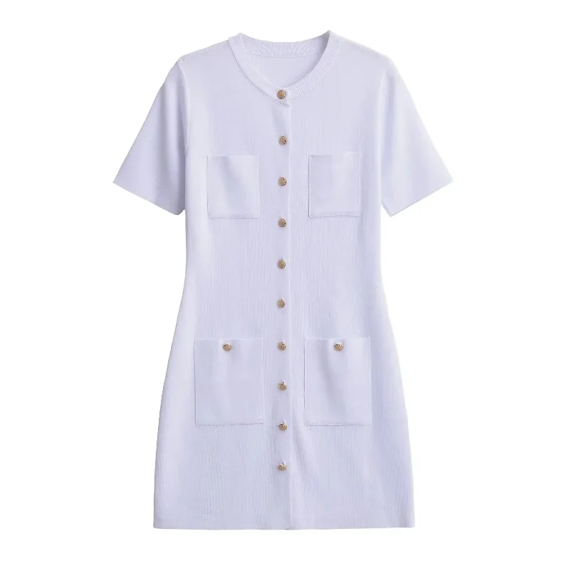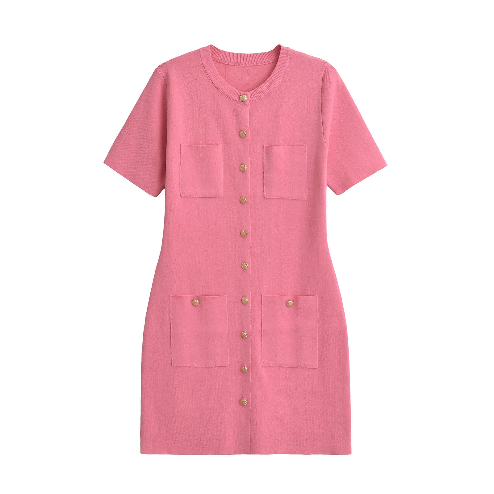 Women's Fashion Summer Sweater Dresses Elegant Short Sleeve O Neck Sheath Knitting Dress Vestidos Female Clothing