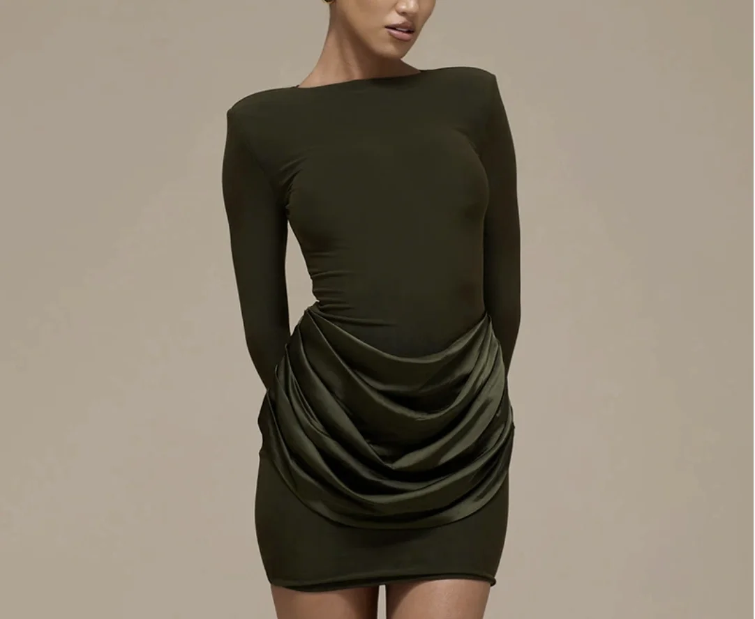 Women's 2026 New Spring Fashion Celebrity Style Elegant Solid Pleated Evening Dress Dress