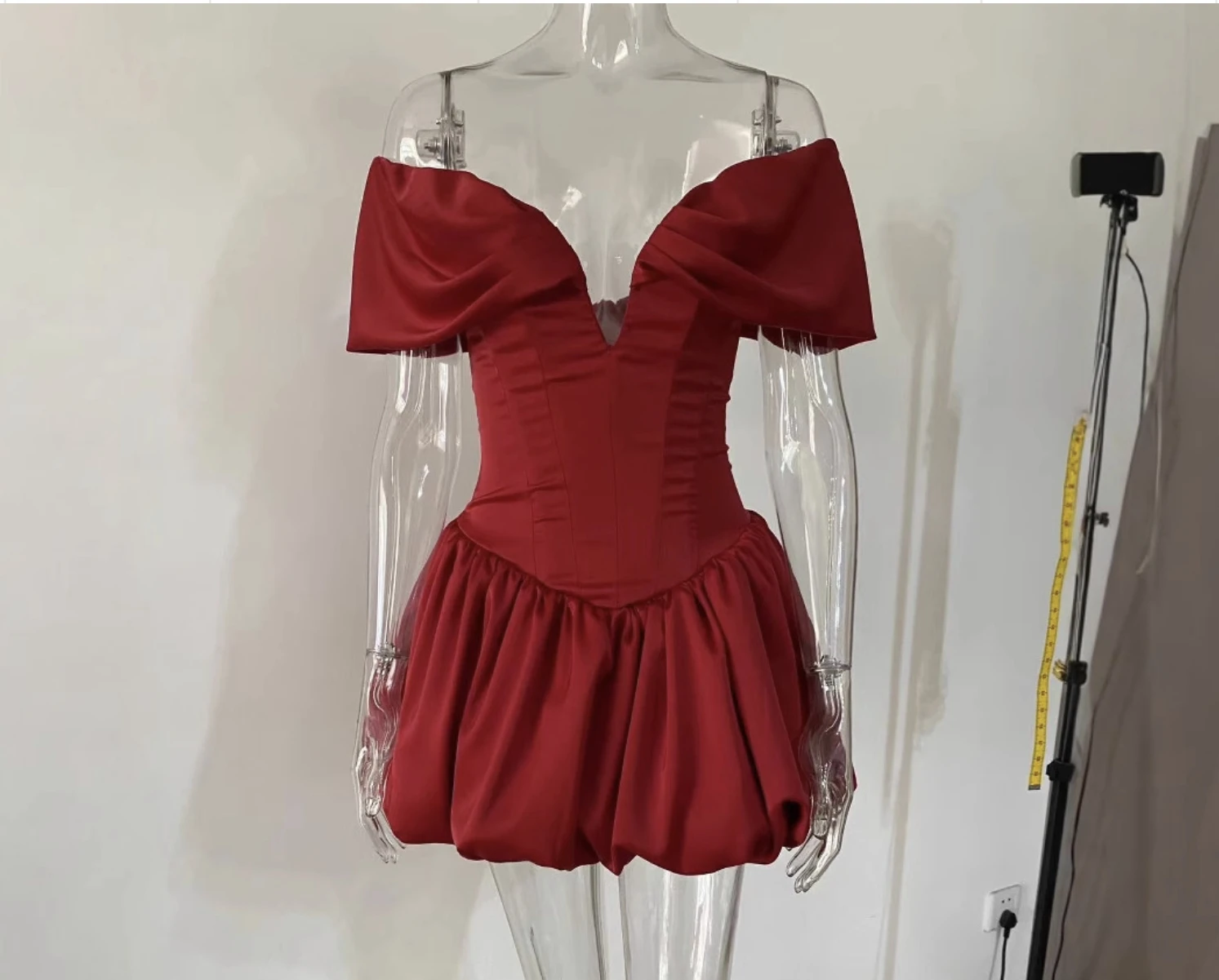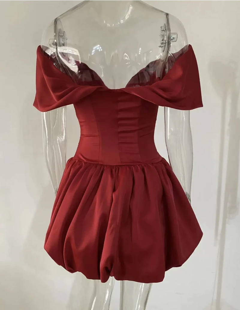 Winter New Women's Elegant Off Shoulder High Quality Solid Color Puff Dress Women Bubble Elegant Dresses 2025