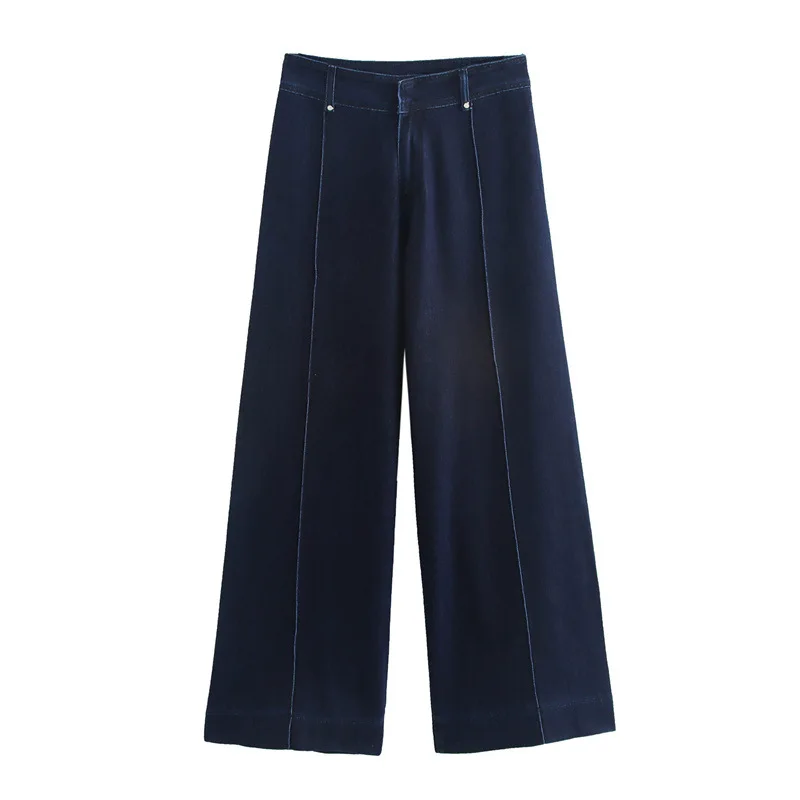 Autumn 2025 New Jeans Women's Contrast Color Denim Fabric Mid-Waist Straight Ankle Jeans European Clothing
