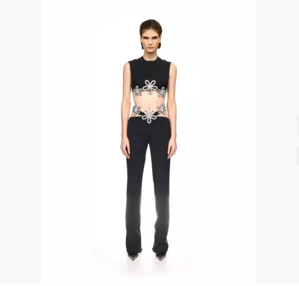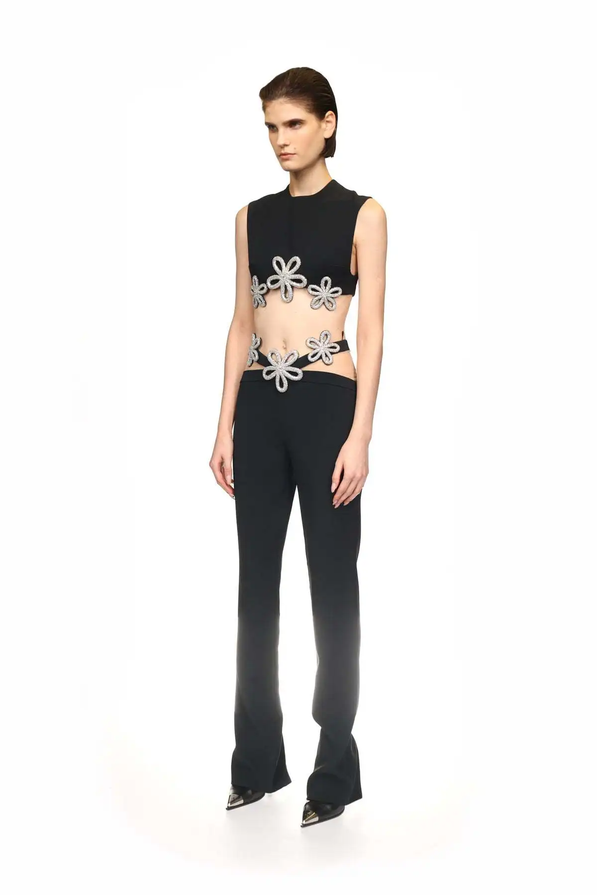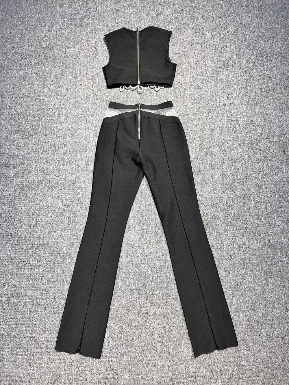 Stylish Luxury Diamonds Woman Bandage Set Sexy Backless Short Jacket and Pencil Pants 2 Pieces Evening Party Outfit