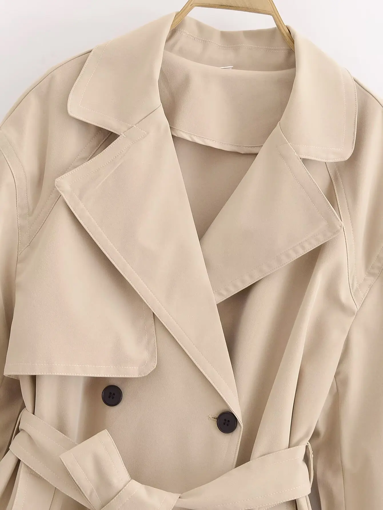 Stylish Women's Rich Burgundy Blend Trench Coat High Quality Double-Breasted with Buttons Belt Cinch Waist Large for Spring