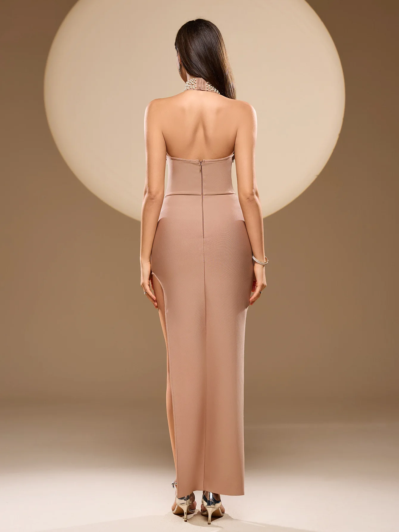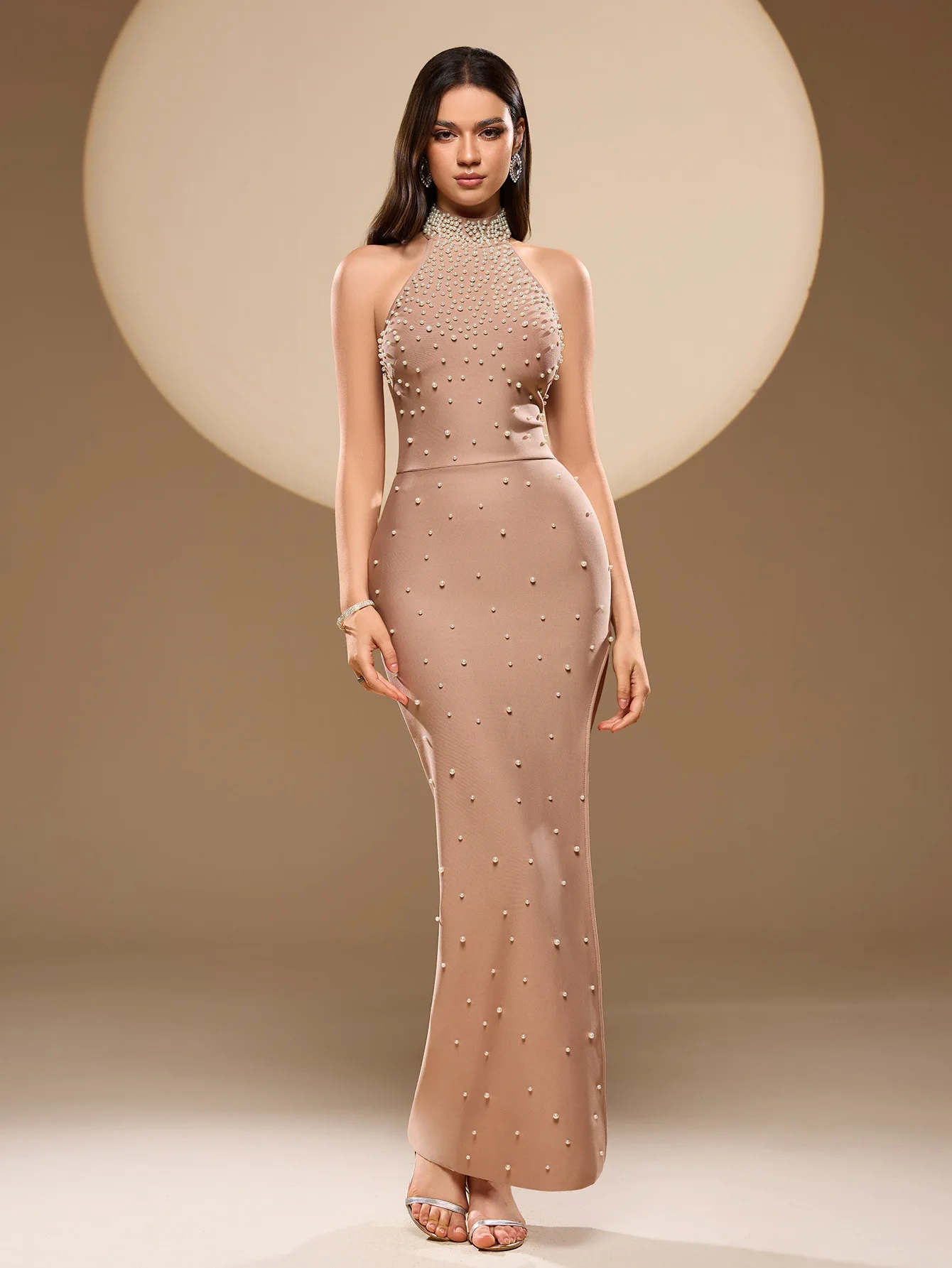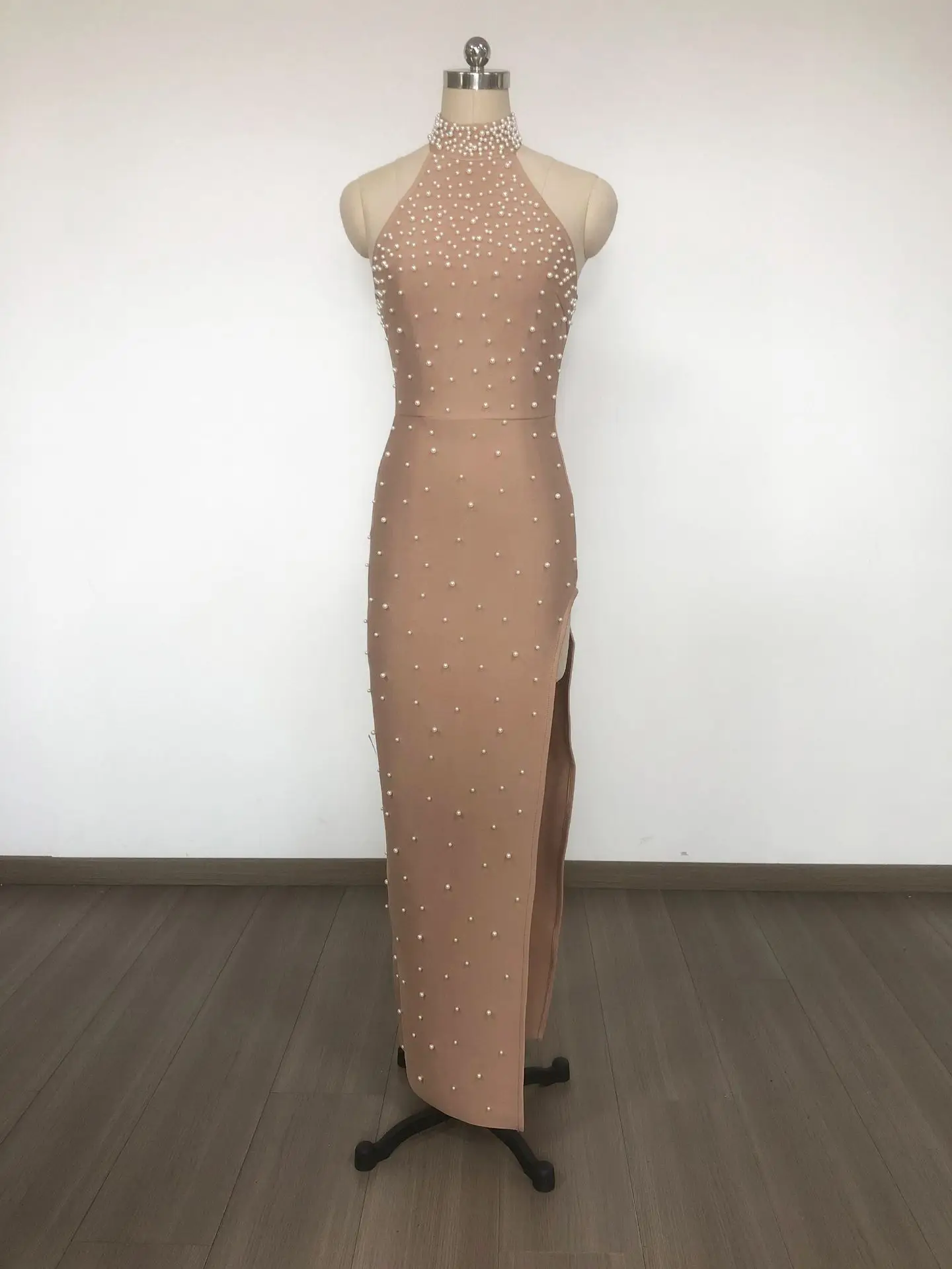 New Women Sexy Halter Pearl Beads Bodycon Bandage Maxi Dress Off Shoulder Elegant Party Luxury Birthday Wedding Dresses