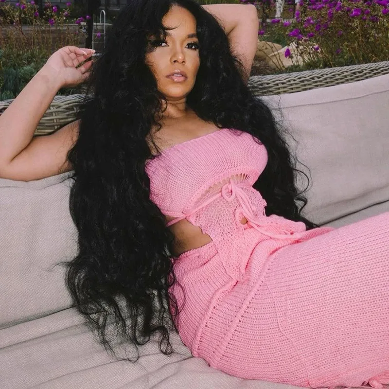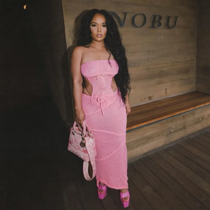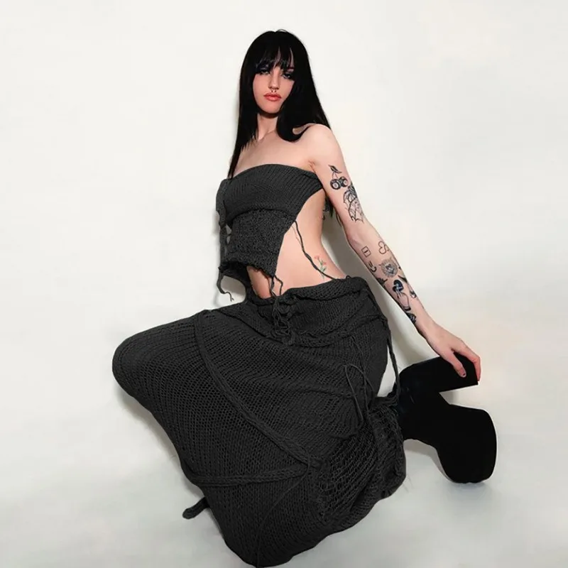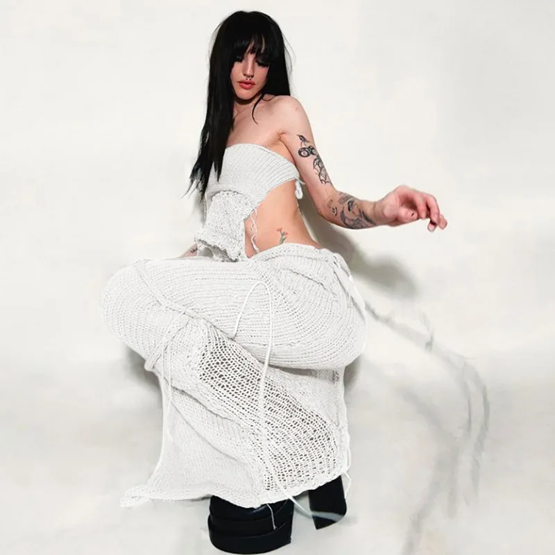 2024 Summer New Women's Sexy Chest Wrapping Bareback Strap up Small Tank Top High Waist Tassel Long Dress Set