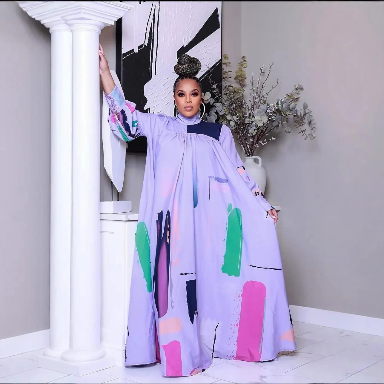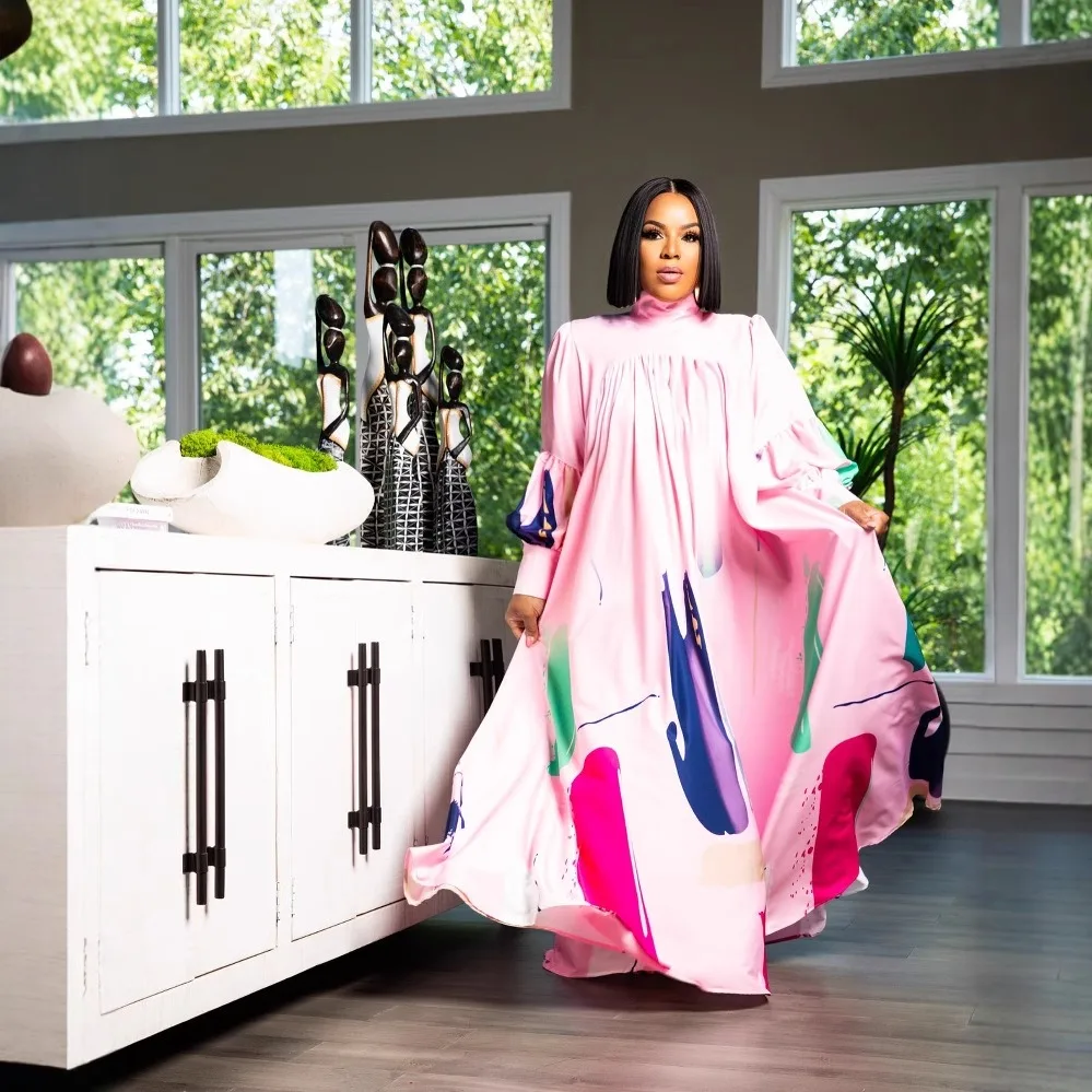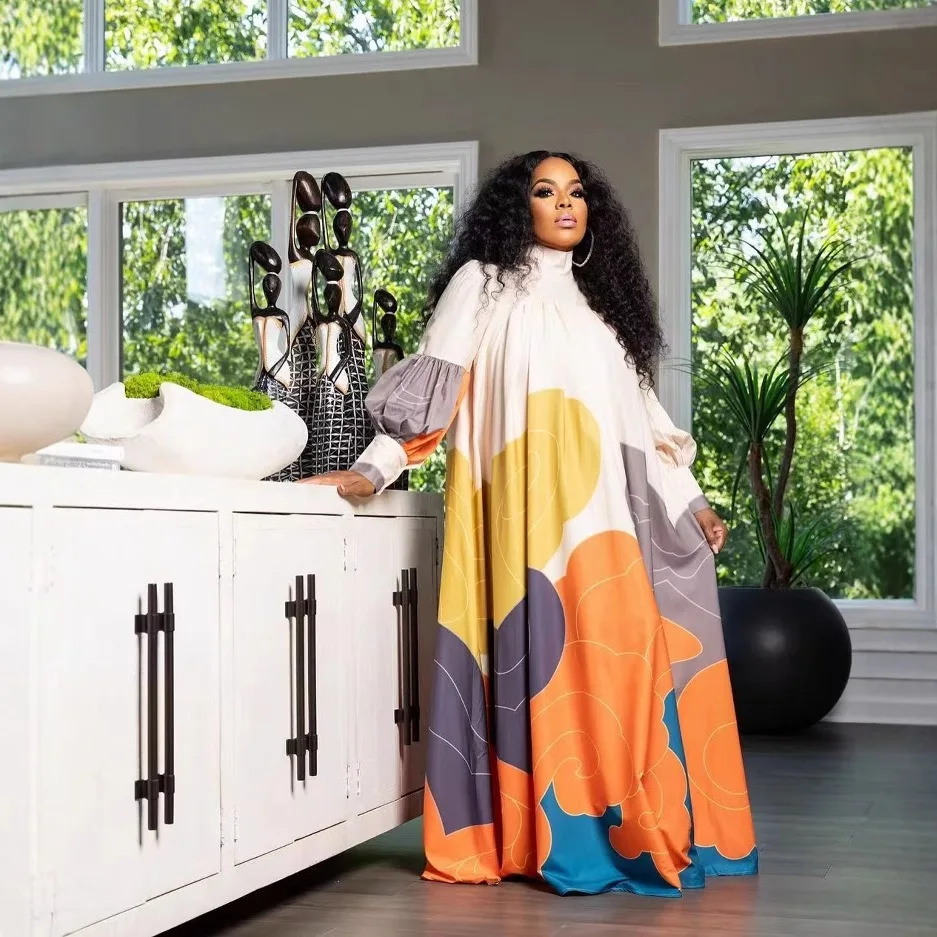 Autumn New Women's Long Skirt with Printed Long Sleeves and a Large Swing Skirt