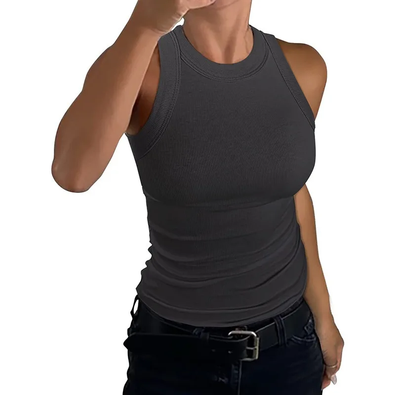 Summer Women's Ribbed Round Neck Slim Fit Fashionable Casual I-shaped Vest