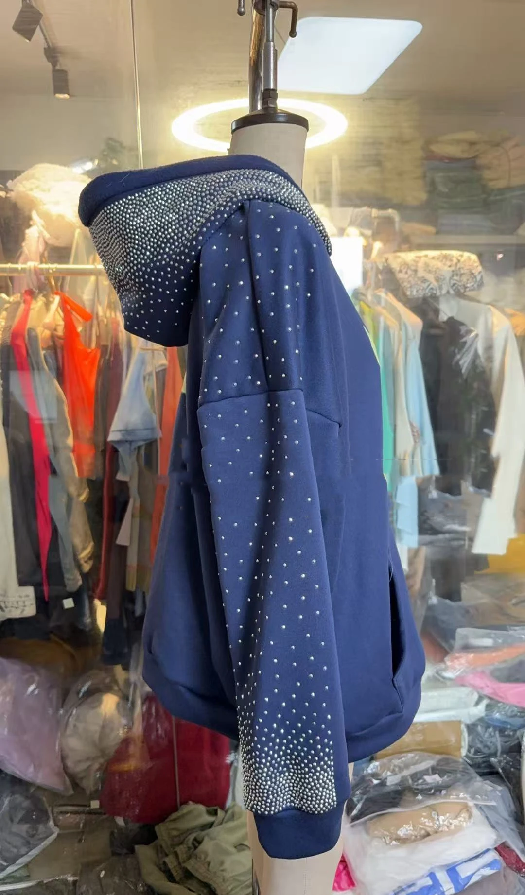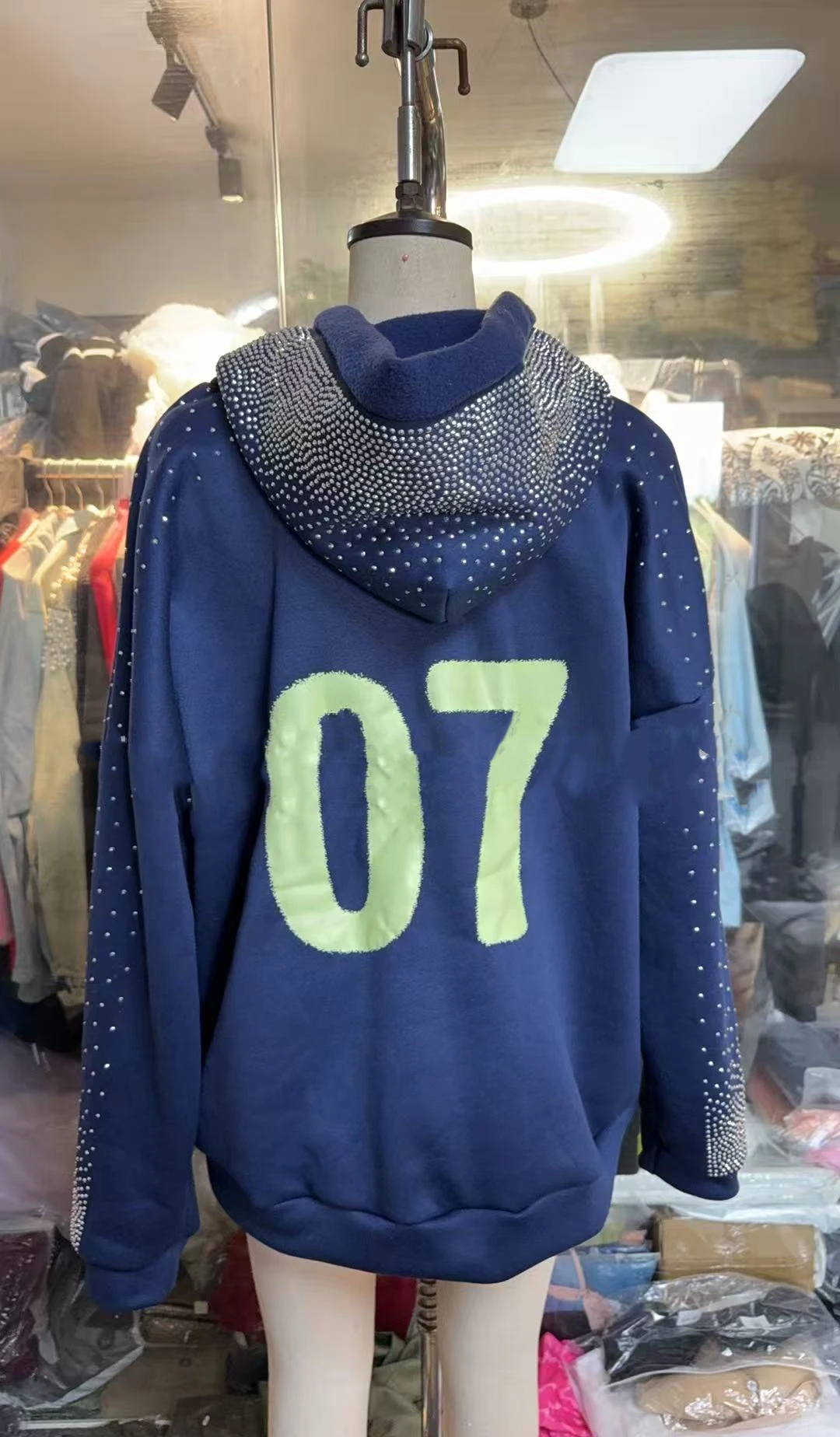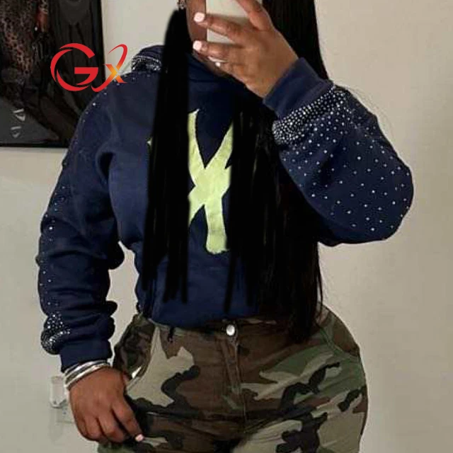 GX9555 Fashion Autumn Clothing Vendor Blouse Women Sexy Logo Rhinestone Printed Tops Lady Long Sleeve Hooded