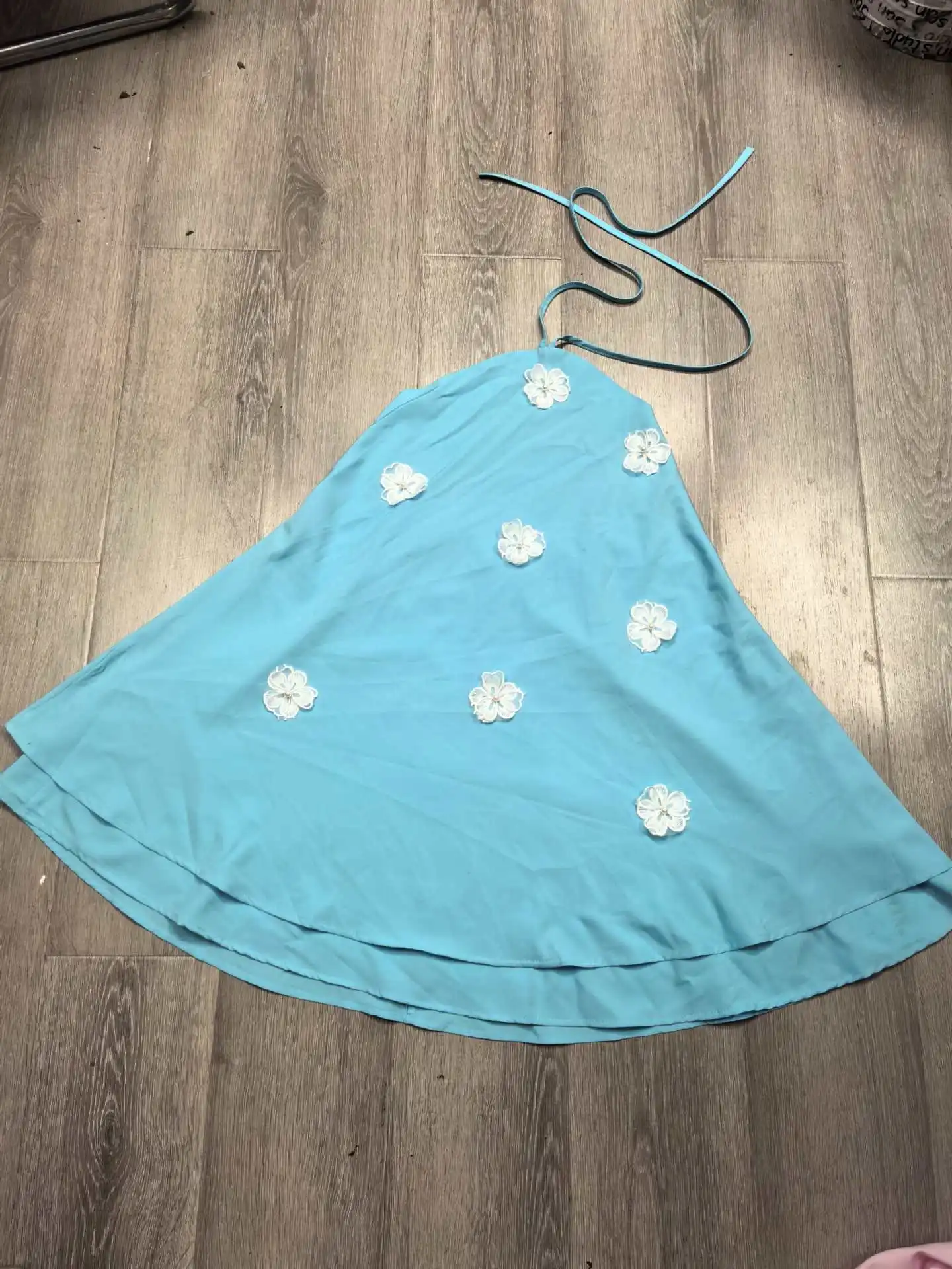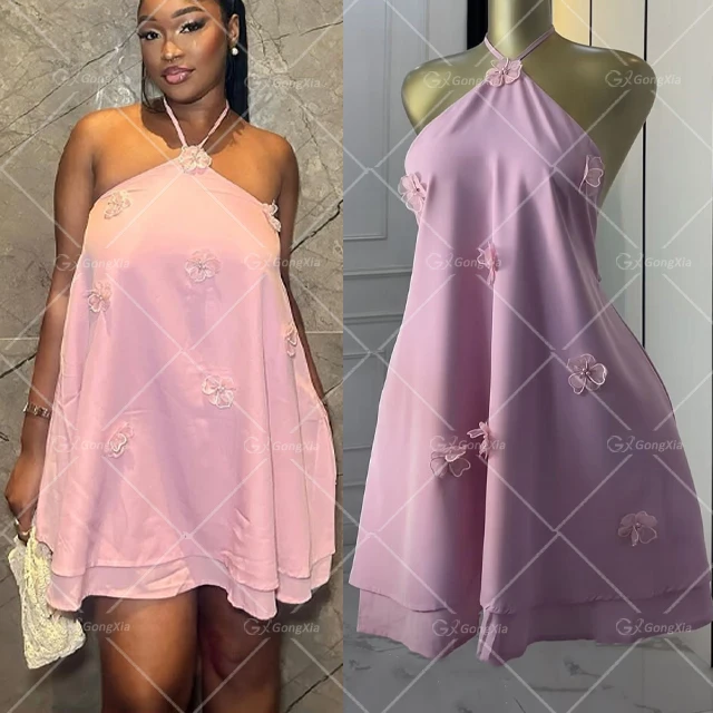 GX0009 Fashion 2025 Lady Summer Sexy Elegant Halter 3D Floral Mini Dresses Women Clothing Boutique Backless Party Dress