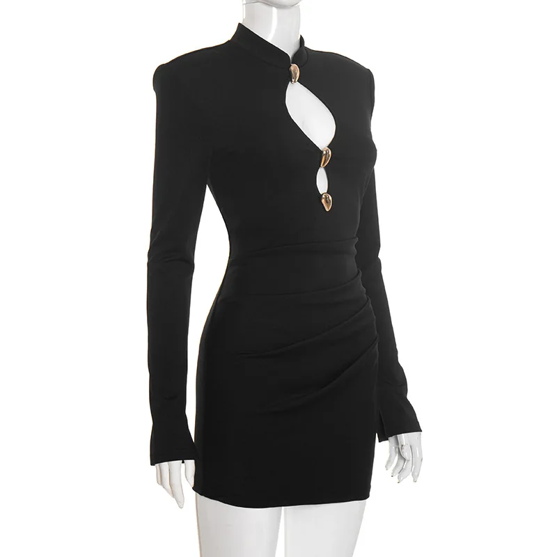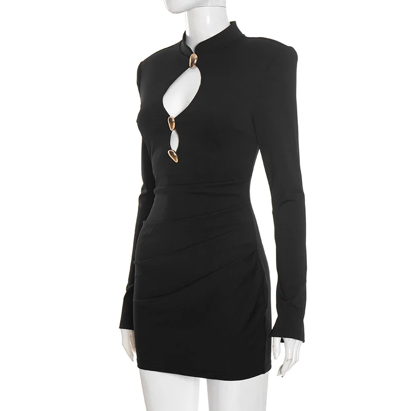 GX0341 Fashion 2025 Spring Autumn Women Boutique Clothing Ladies Elegant Sexy Mini Dress Long Sleeve Hollow Out Unique Dresses