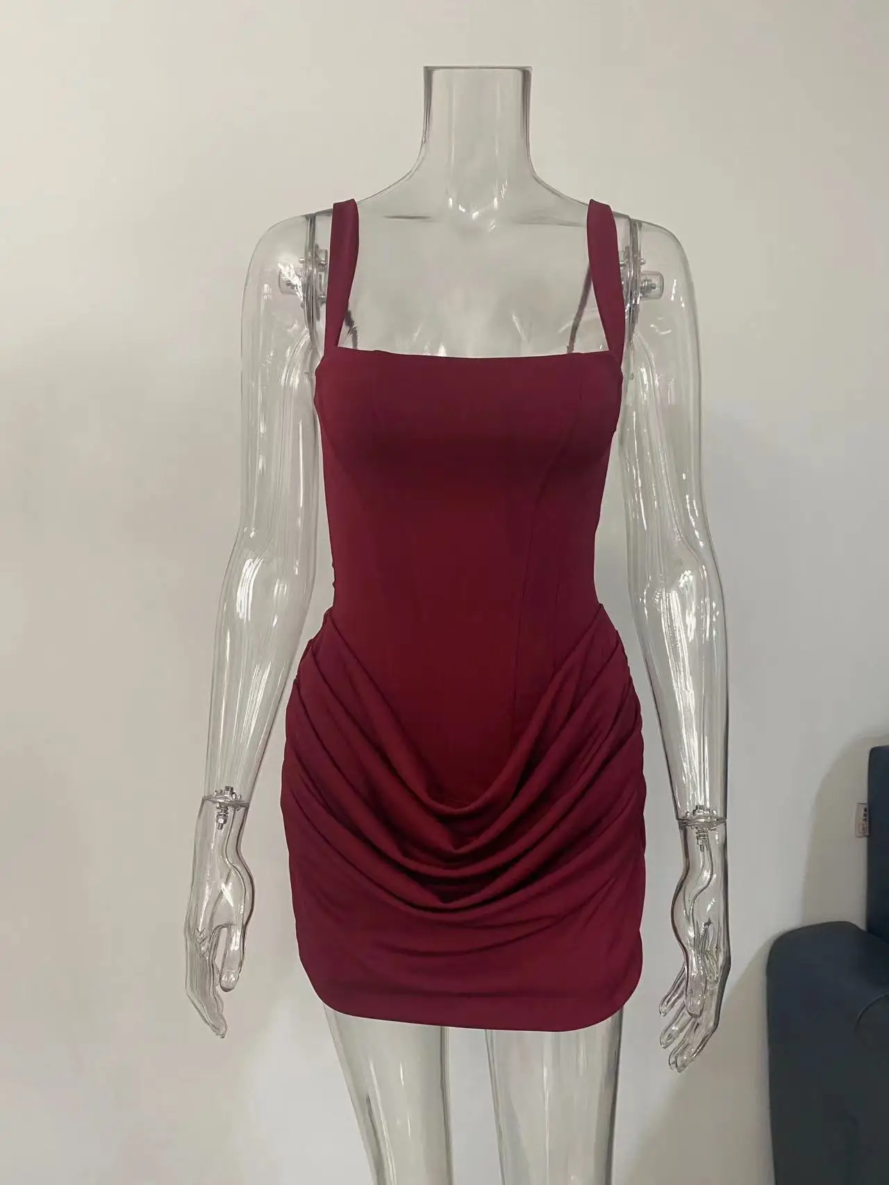 GX25188 High Quality Women Clothing Boutique Sexy Street Wear Sleeveless Party Mini Dress Square Neck Pleated Evening Dresses