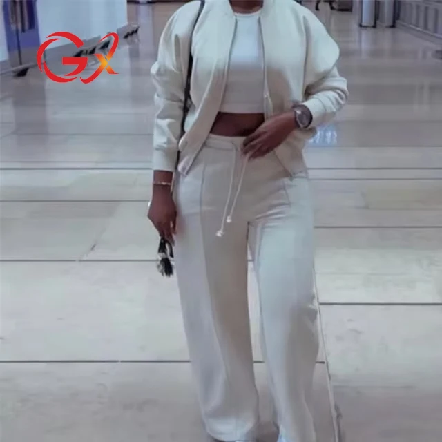 GX0851 Fashion 2024 Fall Winter Outfit Casual Long Sleeve Zipper Fleece Jacket and High Waist Pant 2 Piece Set Women Lounge Wear