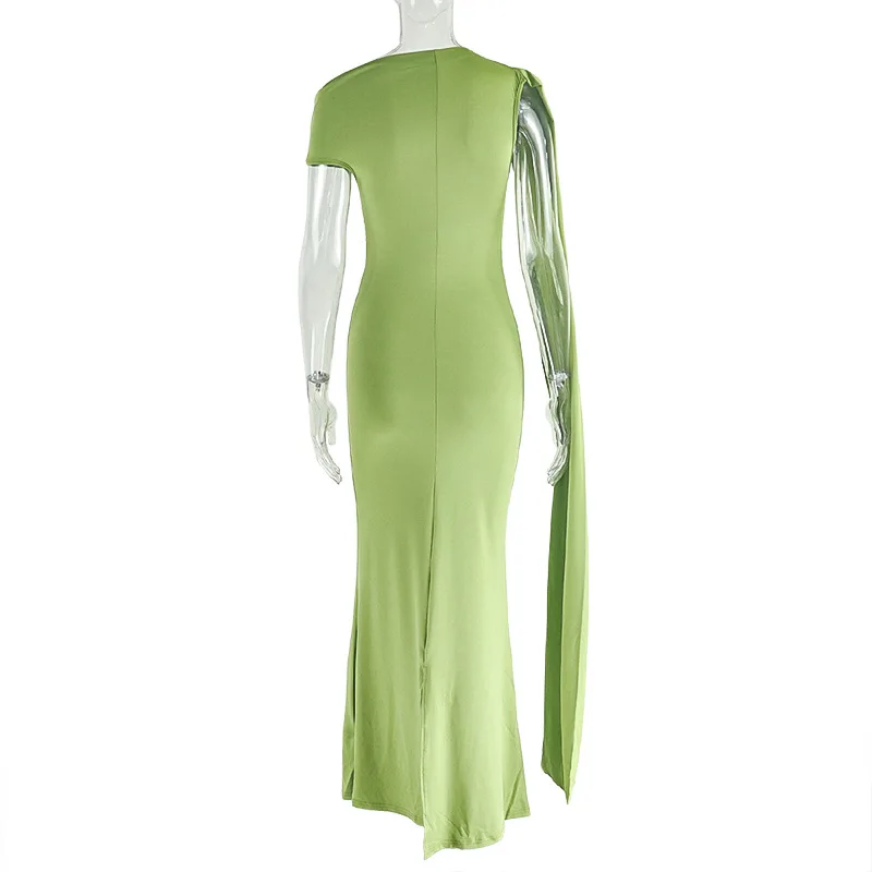 GX02762 Fashion Summer Women Clothing Boutique 2025 Sexy Short Sleeve Diagonal Collar Long Dress Elegant Party Maxi Dress