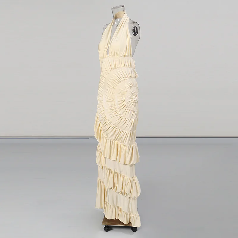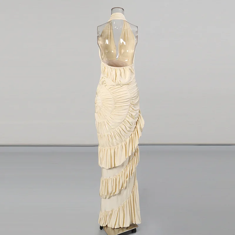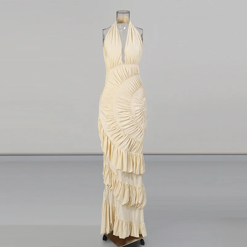 GX3303 Luxury Quality Women Sexy Sleeveless Halter Deep V-neck Party Long Dress Slim Fit Ruffled Unique Evening Maxi Dresses