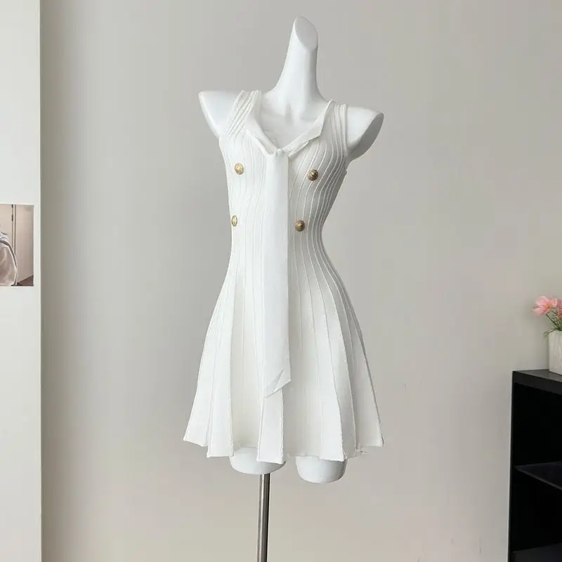 Women's Sexy Knitted Dress Design Solid Colors Natural Waistline Breathable Sustainable Knit Dress for Women