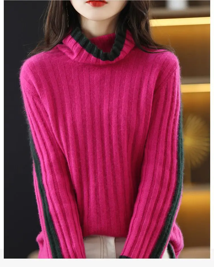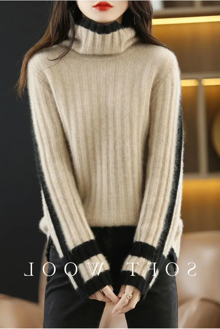 Fashion Autumn and Winter Loose Sweater Turtleneck Oversize Thick Top Knitted Pullover Sweater for Women