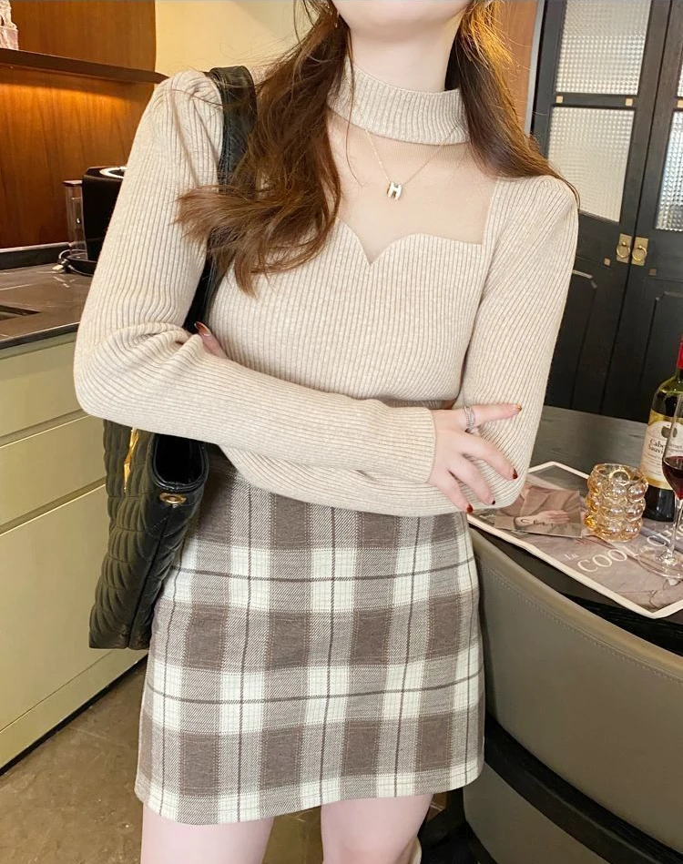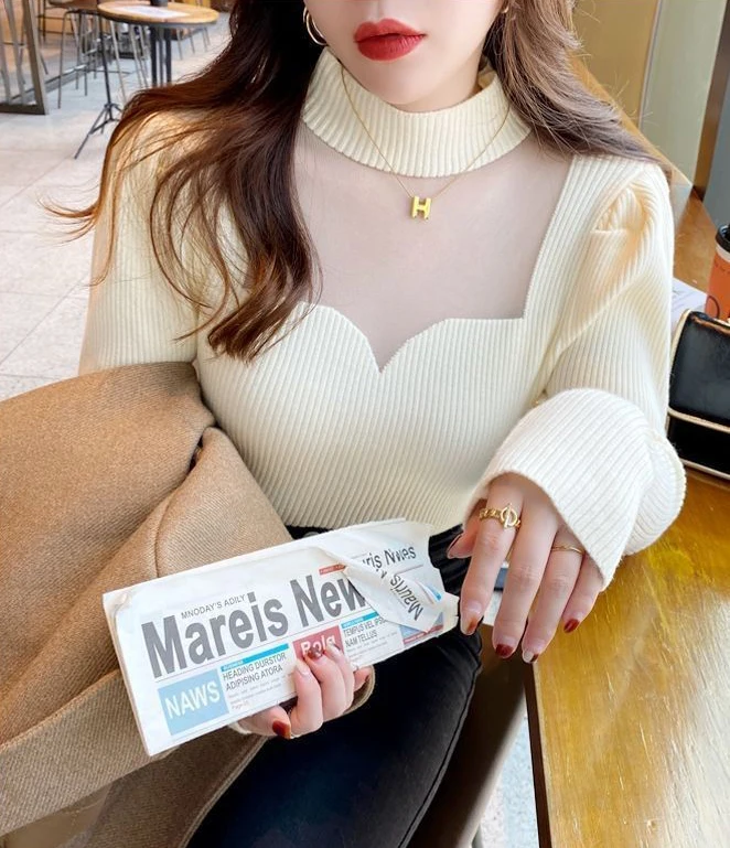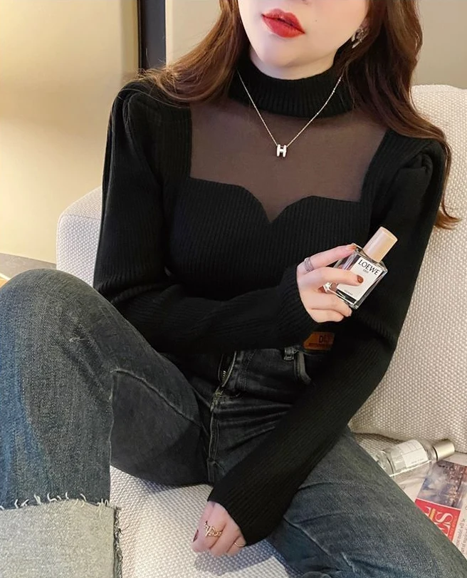 Bottom Shirt Design Ladies Niche Pullover Autumn Winter Inner Sweater Semi-turtleneck Sexy Stitching Top Sweater