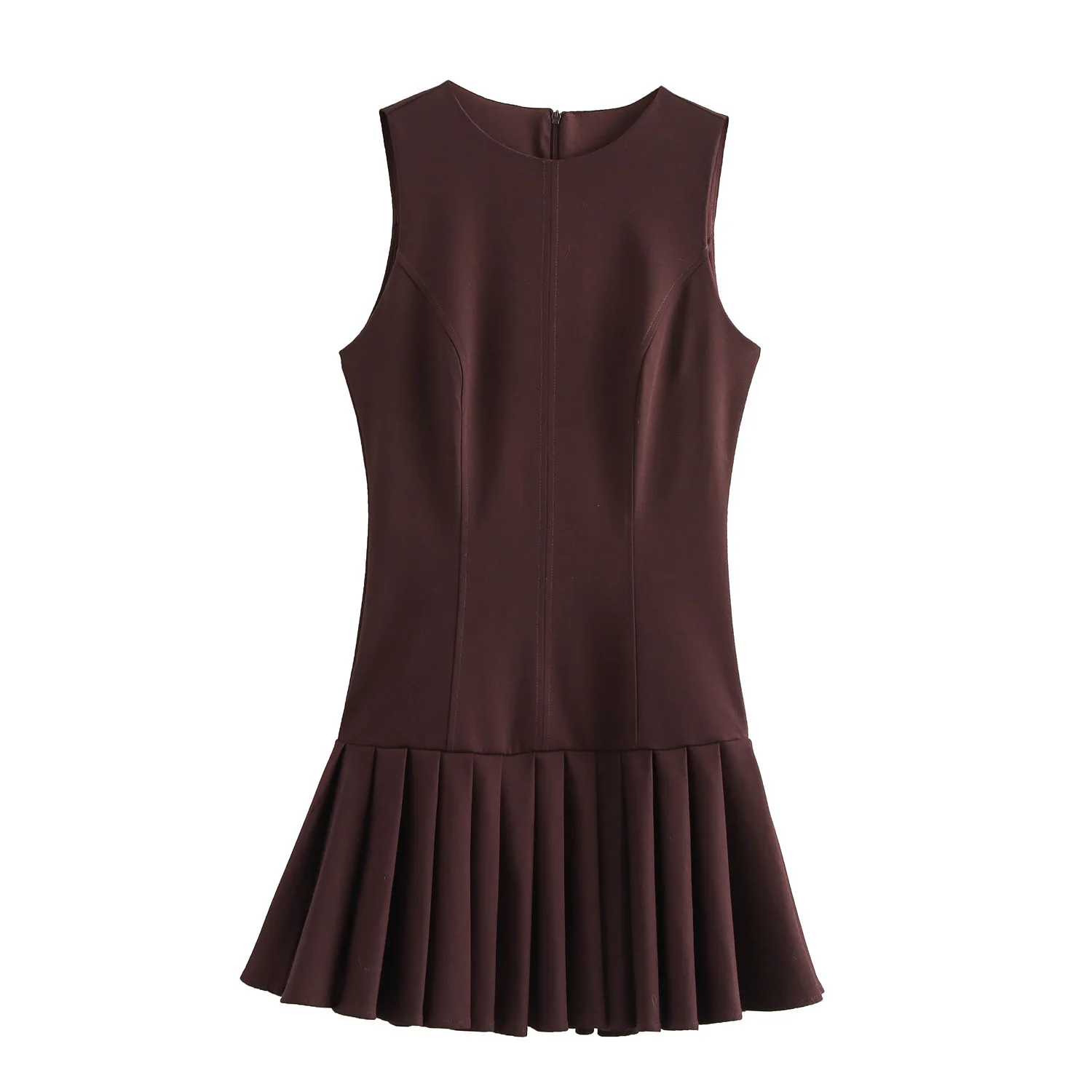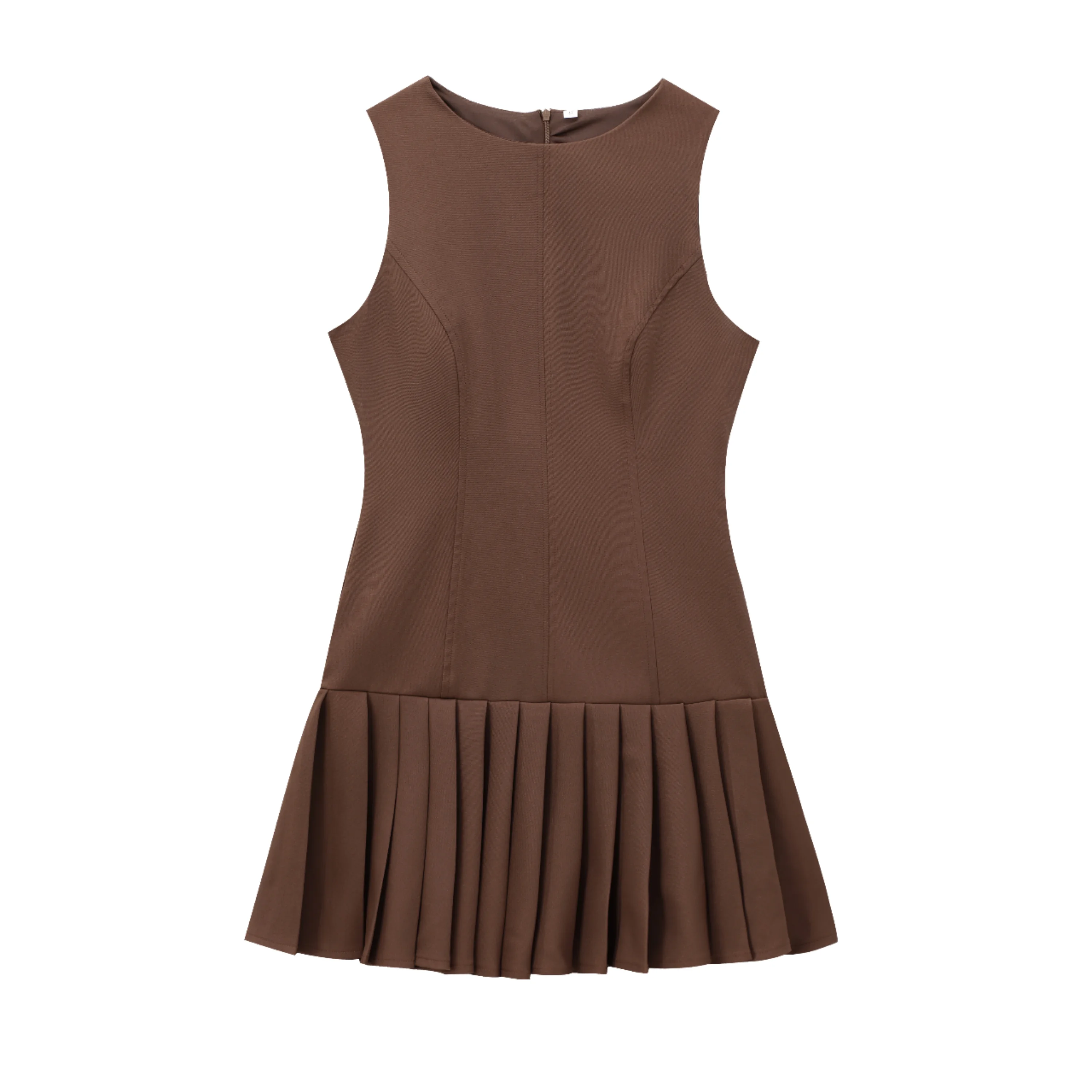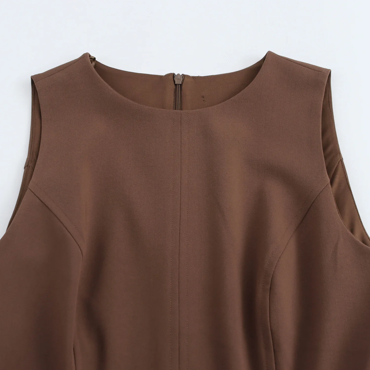 Elegant Summer Casual Dresses for Women Zipper Fly Crew Neck Sleeveless Solid Color Vintage Style Natural Waistline Woven Method