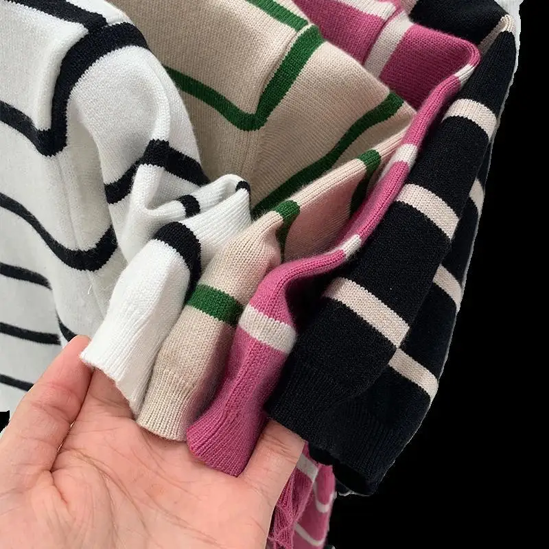 Fashion Women's Short Sleeve Ice Silk Knitted Top Vintage Chic Pullovers in Casual Striped Style Knit Top for Women