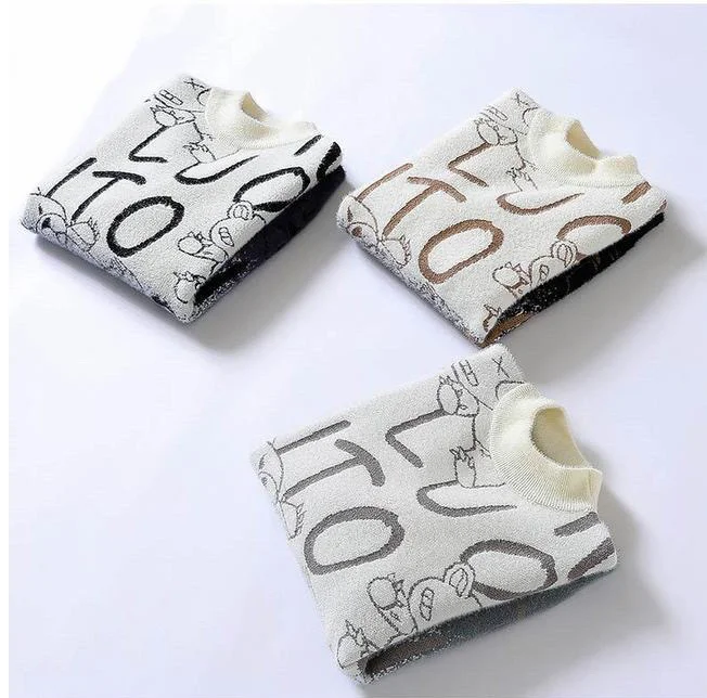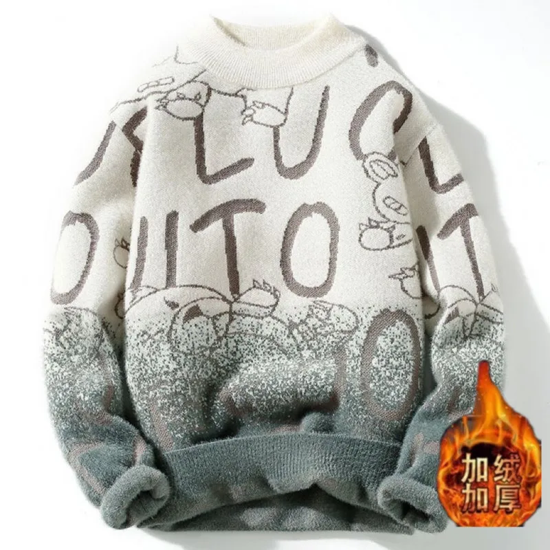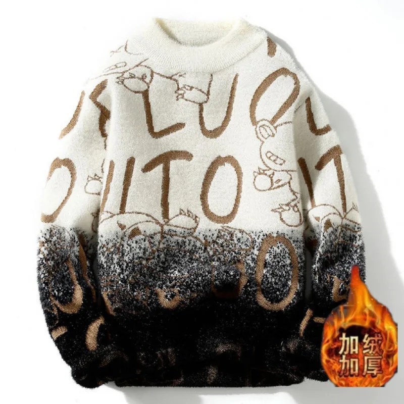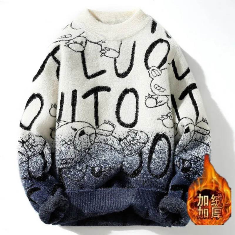 Men's Long-Sleeved Gradient Sweater Korean Fashion Anti-Wrinkle Knitted Polyester Breathable Crew Neck Anti-Shrink Fall/Winter