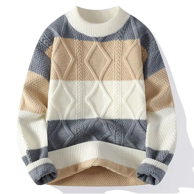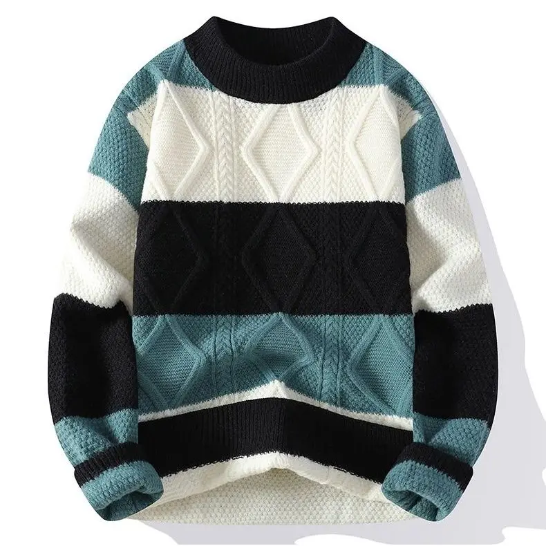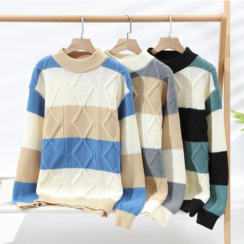Autumn and Winter Round Neck Knitted Sweater Casual Color Blocking Bottom Knitted Pullover Knit Sweater Pullover for Men