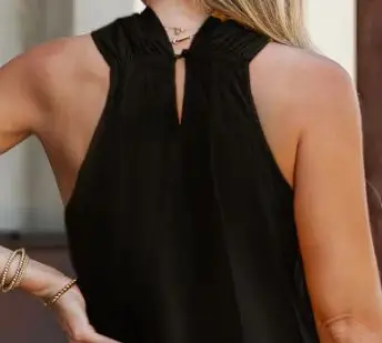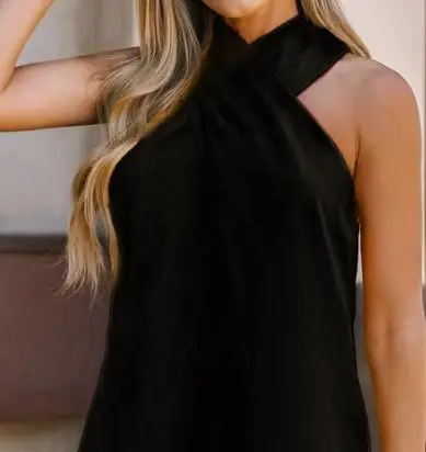 French Summer Mini Black Dress Breathable Washable Knee Party Style Solid Color Pattern Natural Antistatic Hanging Neck Skirt