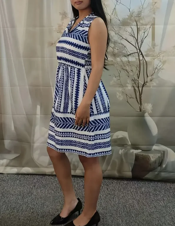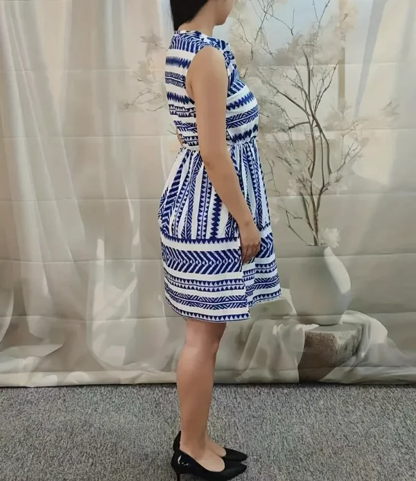 2025 Spring Summer Collection New Fashion Design Printed Vest V-Neck Midi Dress Casual Knee-Length Digital Woven