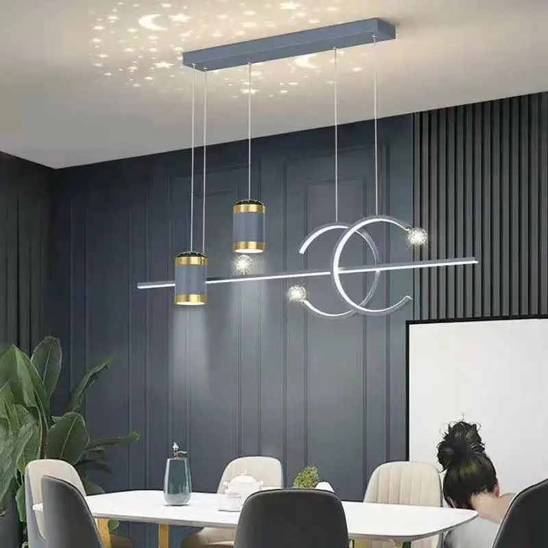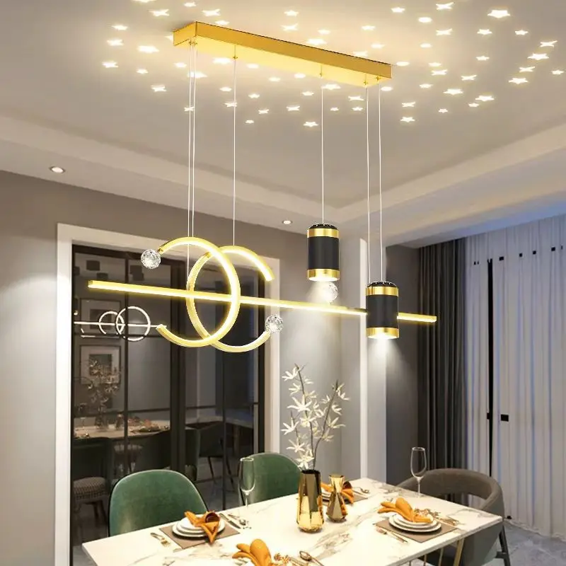 JACKSUN Modern Luxury Dining Island Chandelier Nordic Star Strip Restaurant Lighting Bar Pendant Light