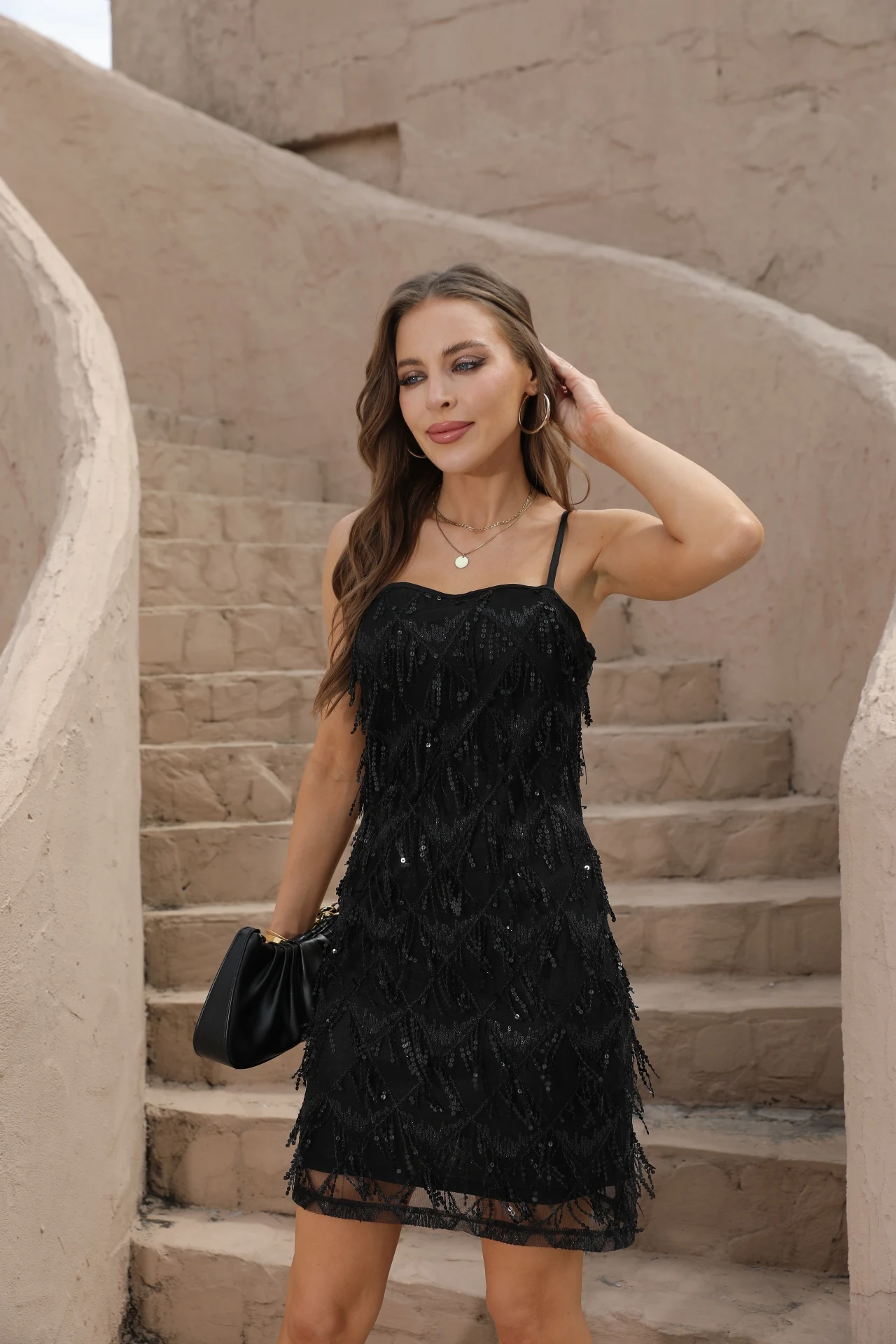 Elegant Women's Evening Party Dress Knee-Length Straight Natural Waist Anti-Static Multi-Layer Fringe Sequin Tassel Skirt