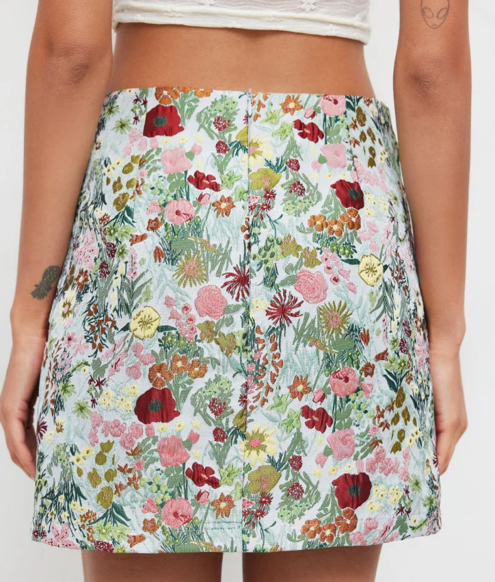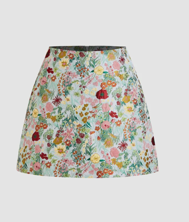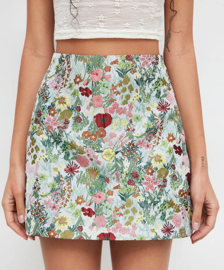 Customized Colorful Small Floral Brocade Woven Fabric Polyester Warp Knit Women's Bustier Skirt