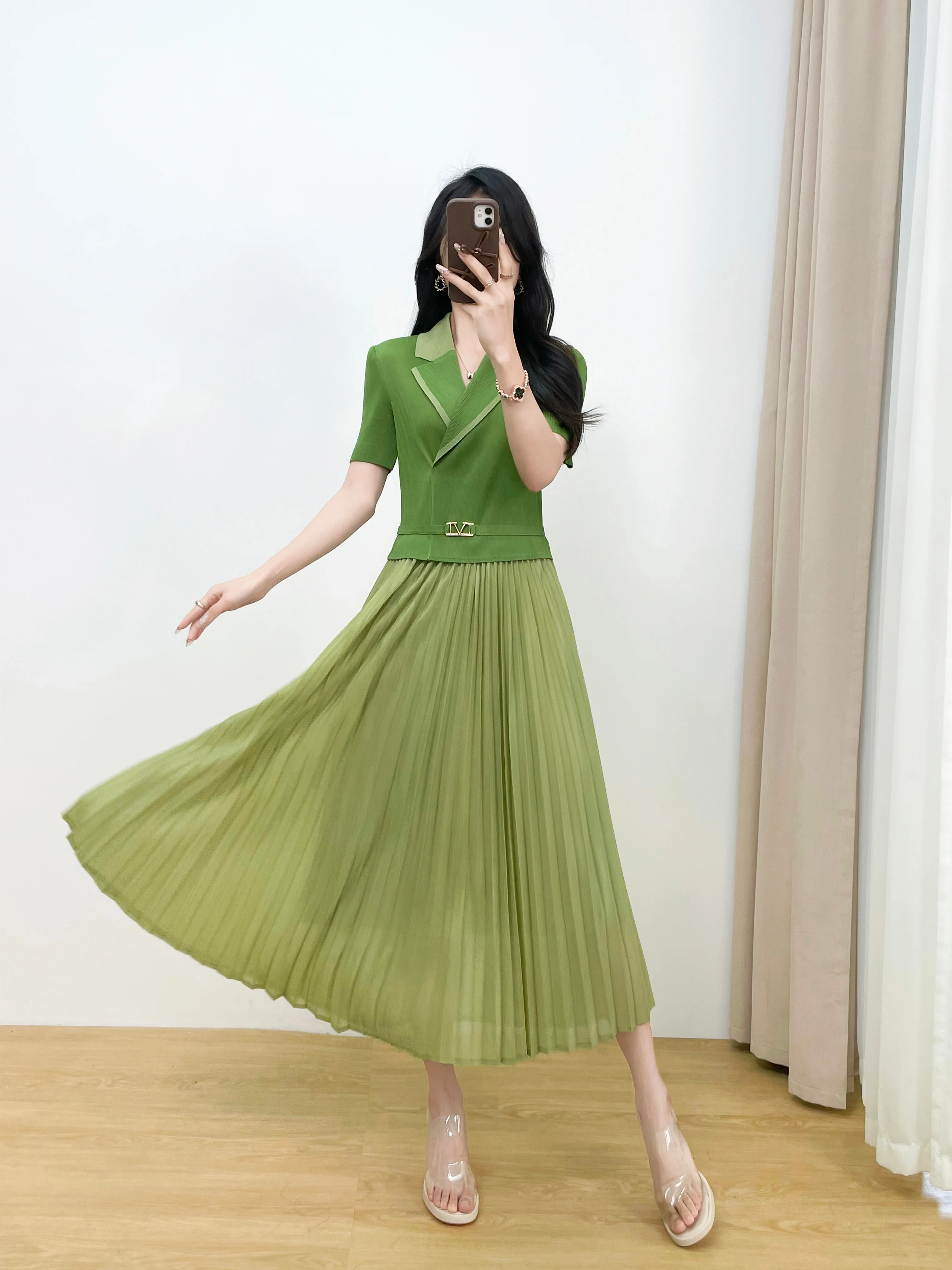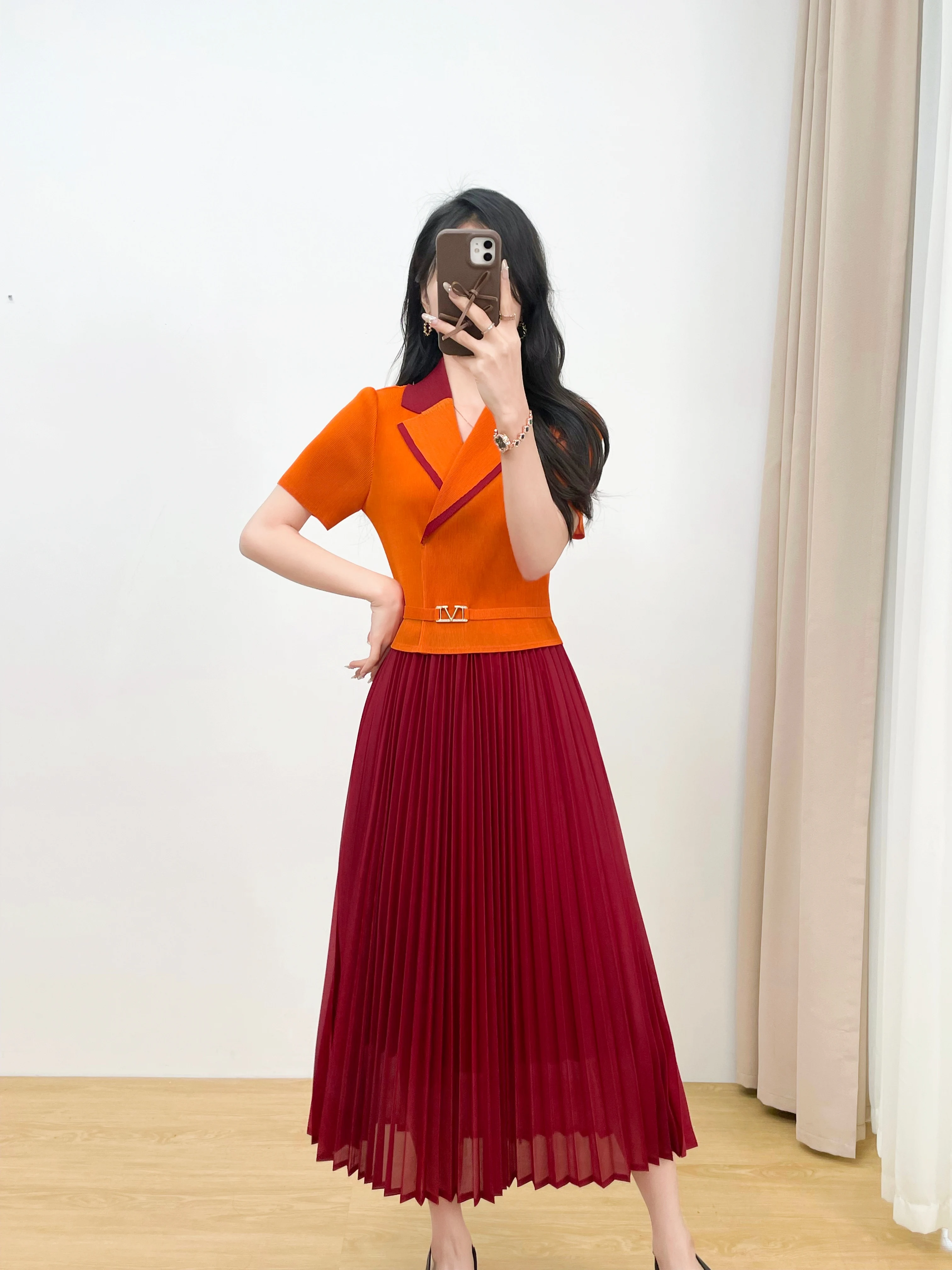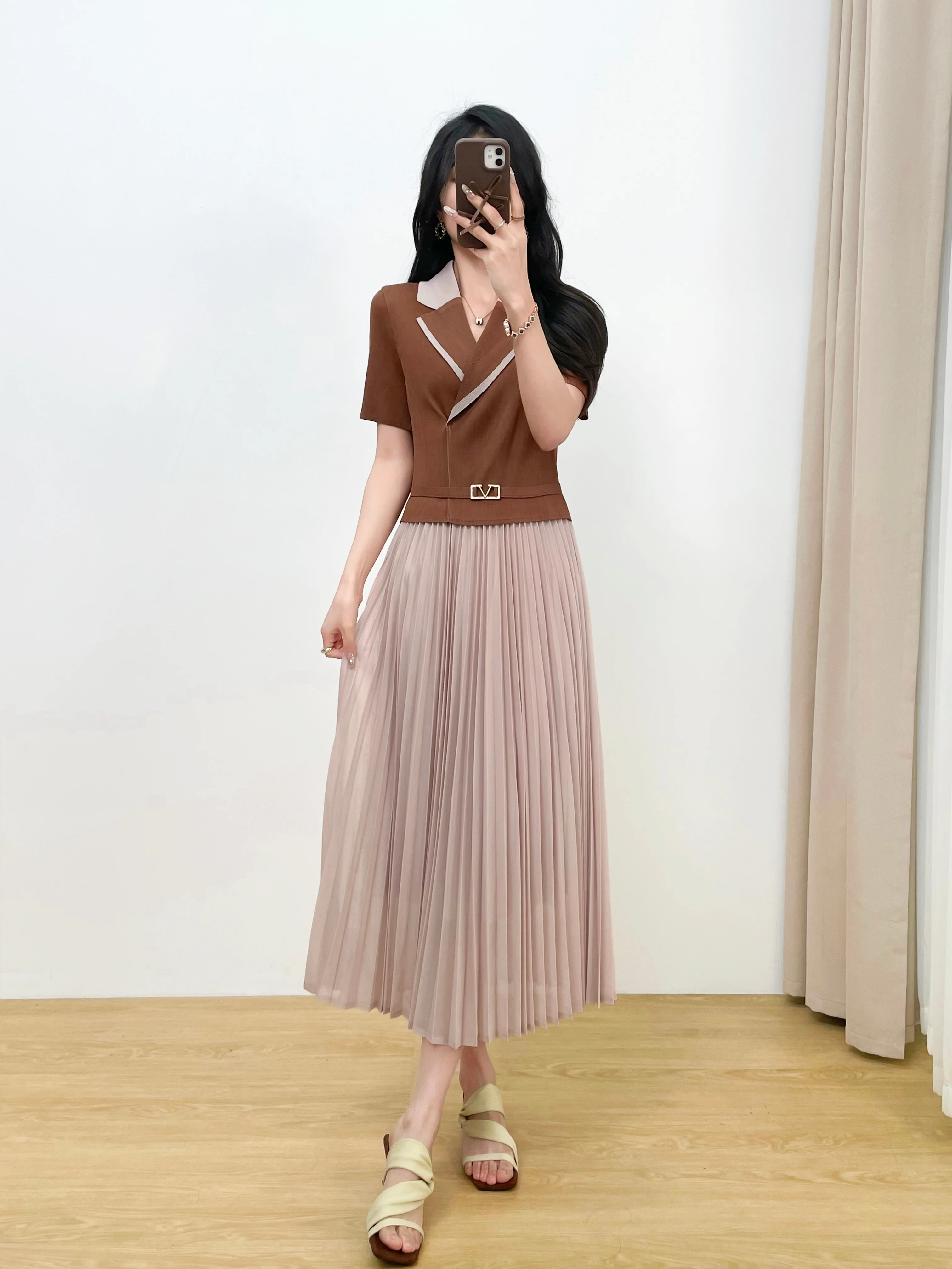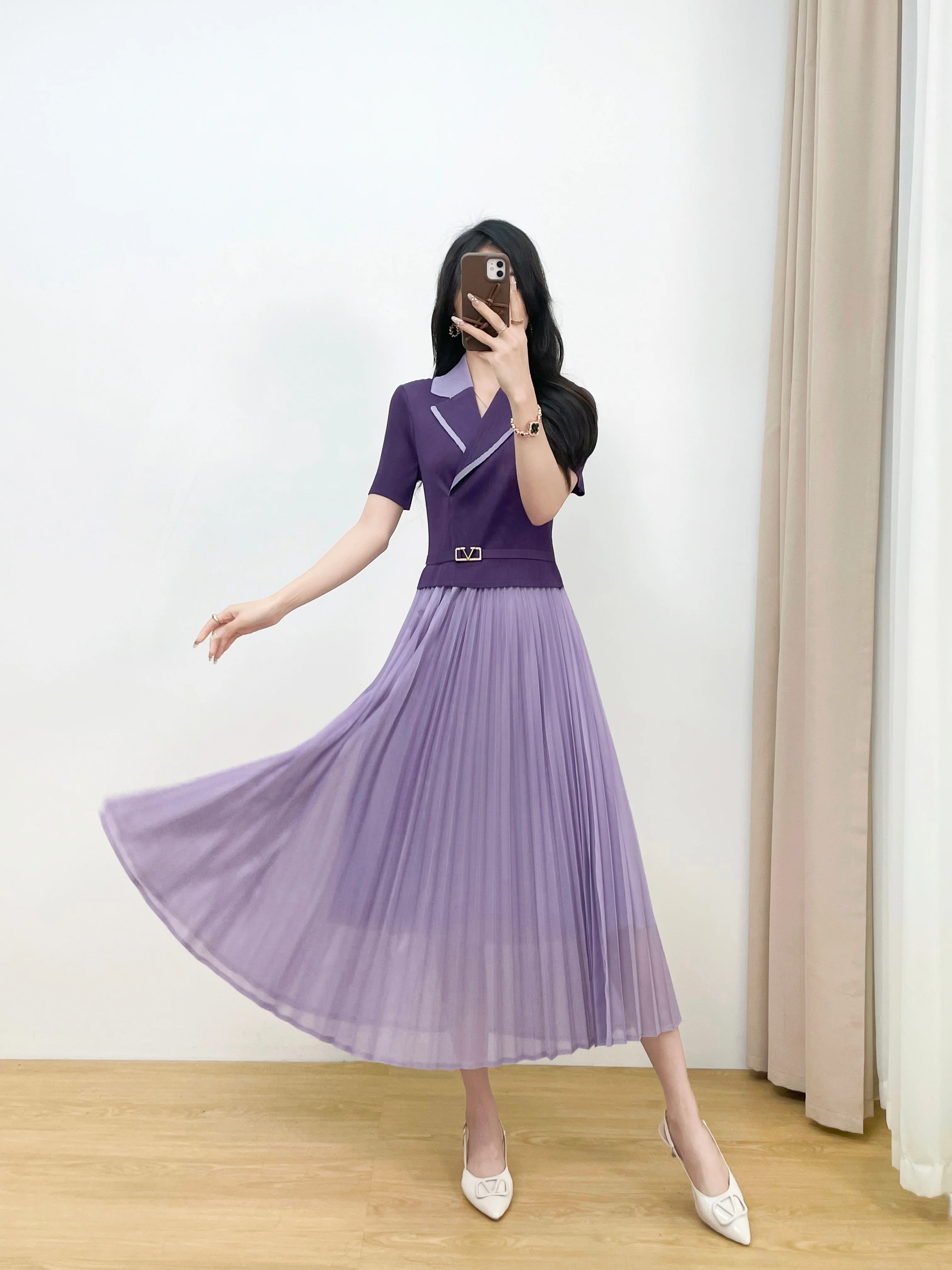 2026 Two-color Elegant Miyake Pleated Dress with Collar and Short Sleeves for Summer
