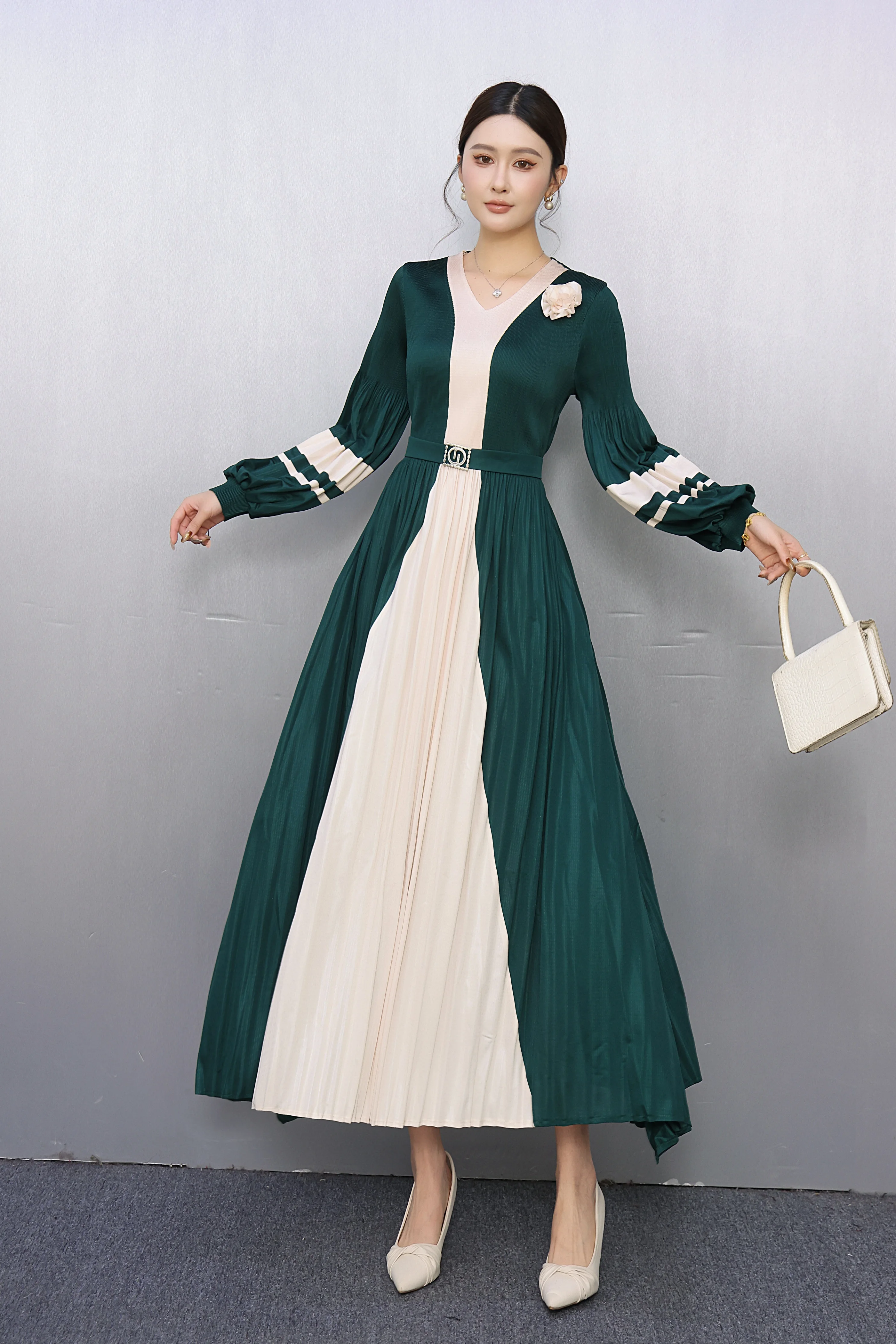 ZYHT 73902 Dark Green Blue Long Sleeve Simple Elegant Evening Dress Customize High End Women Clothing Manufacturer