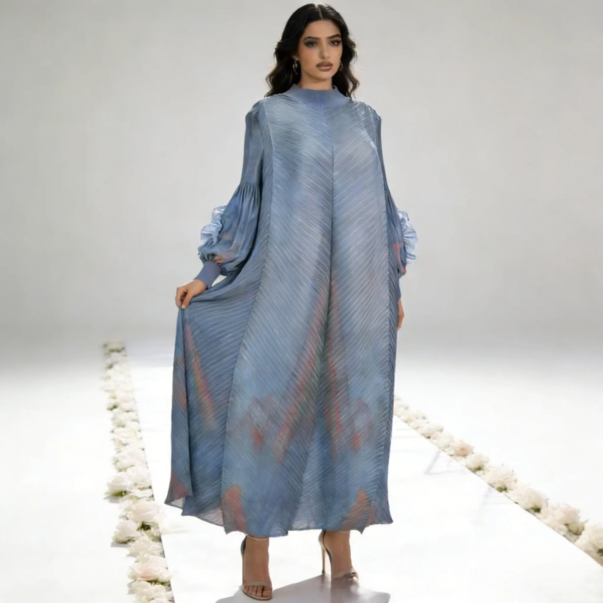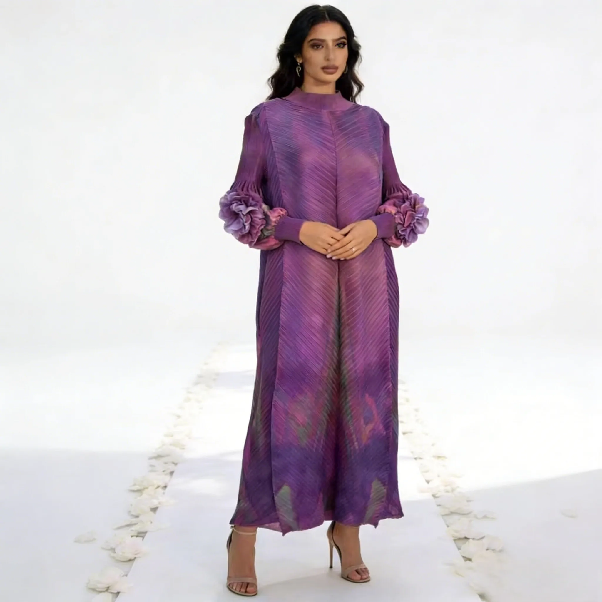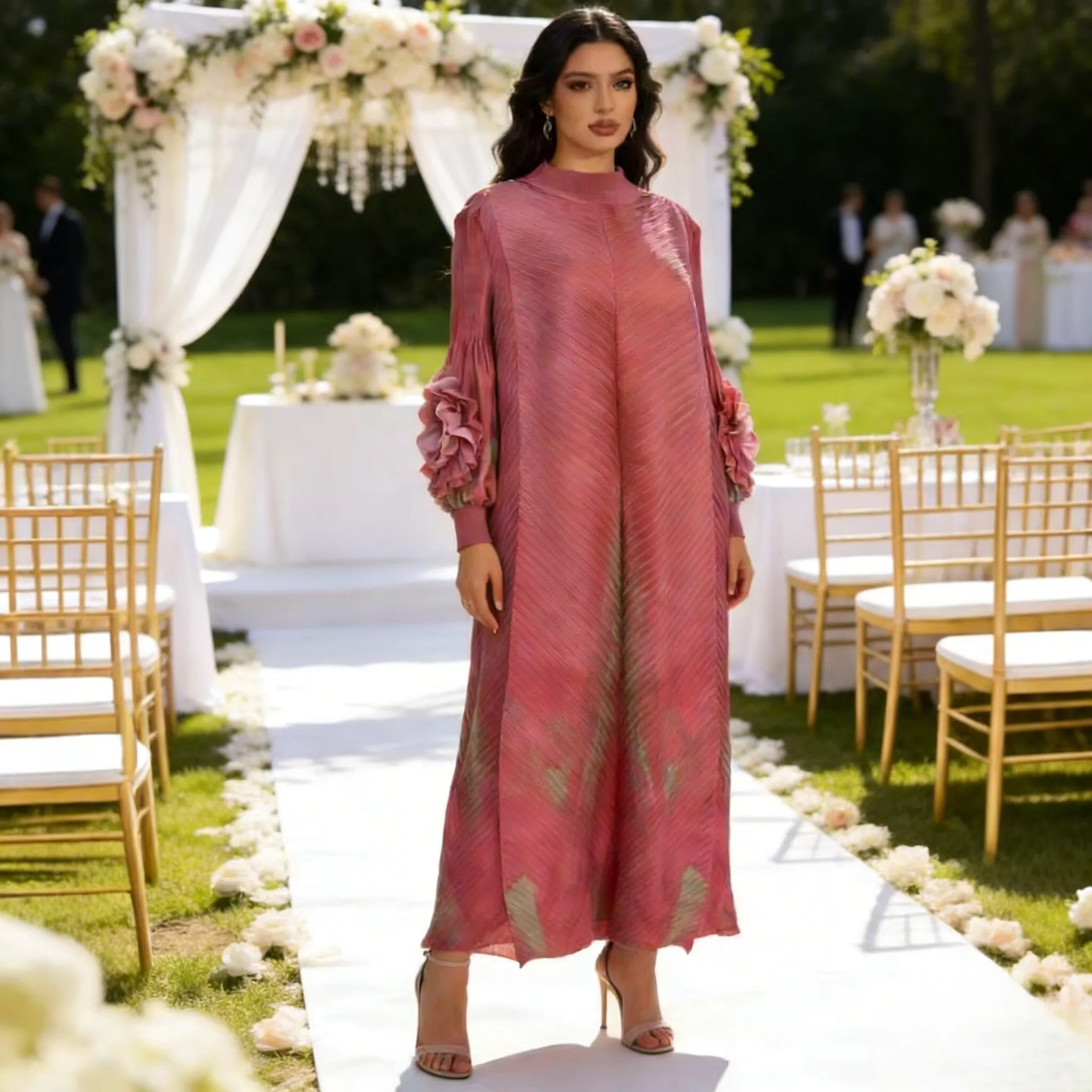 European American Elegant Casual Pleated Midi Dress with Regular Neckline and Sleeves Large Size ODM for Middle East
