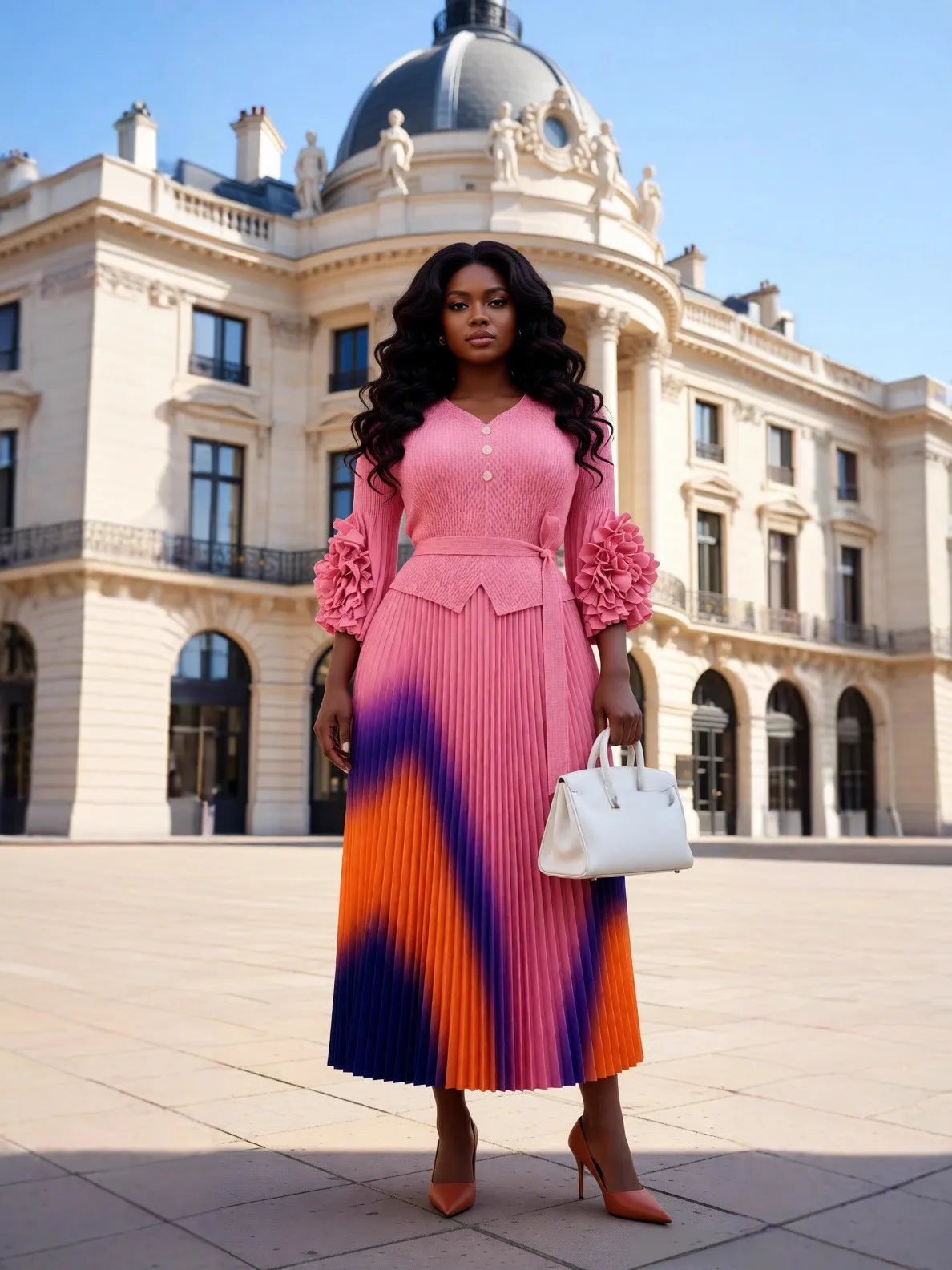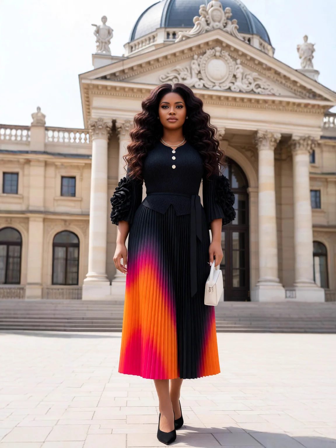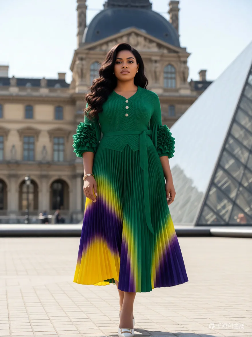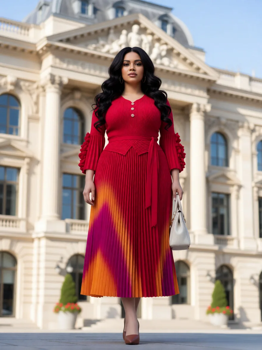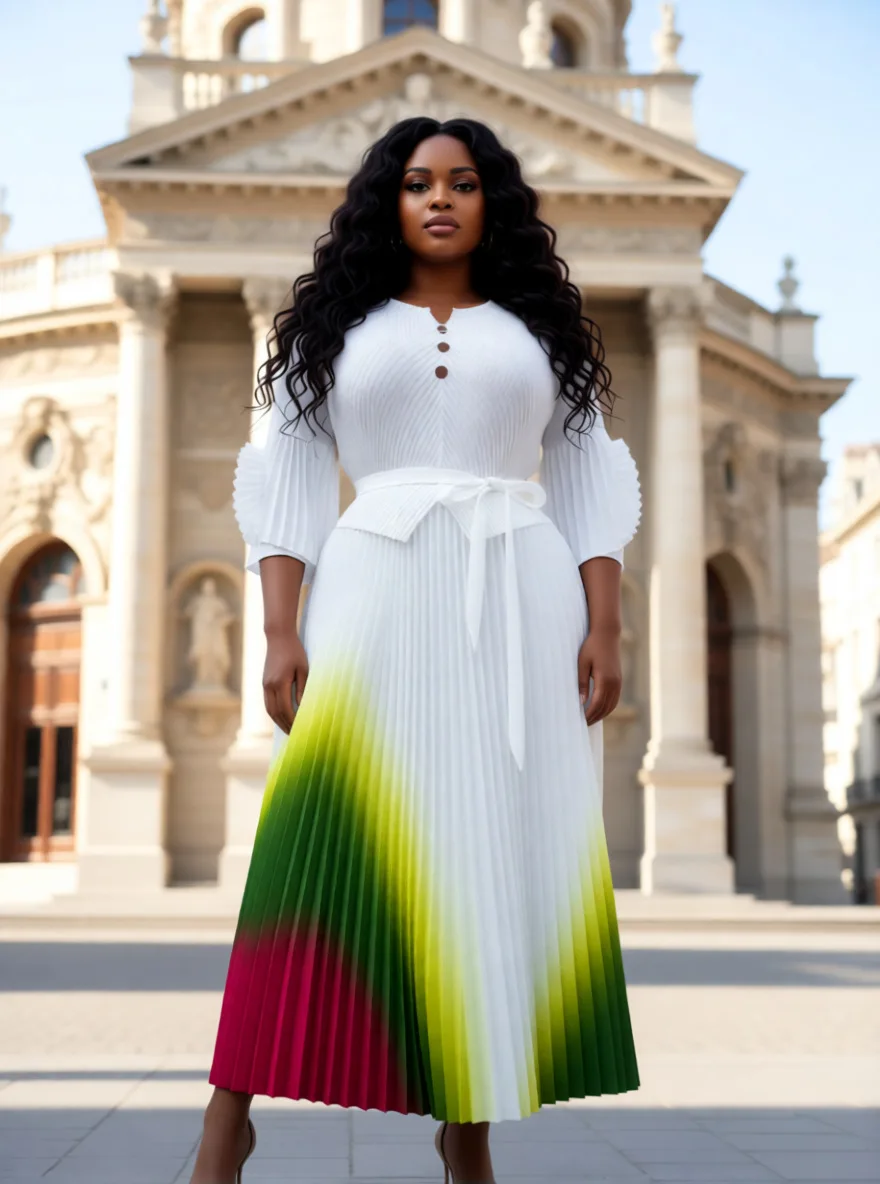 Elegant Plus Size Pleated Maxi Dress Black Ombre Gradient Long Sleeve Formal Cocktail Dress for Women Wholesale