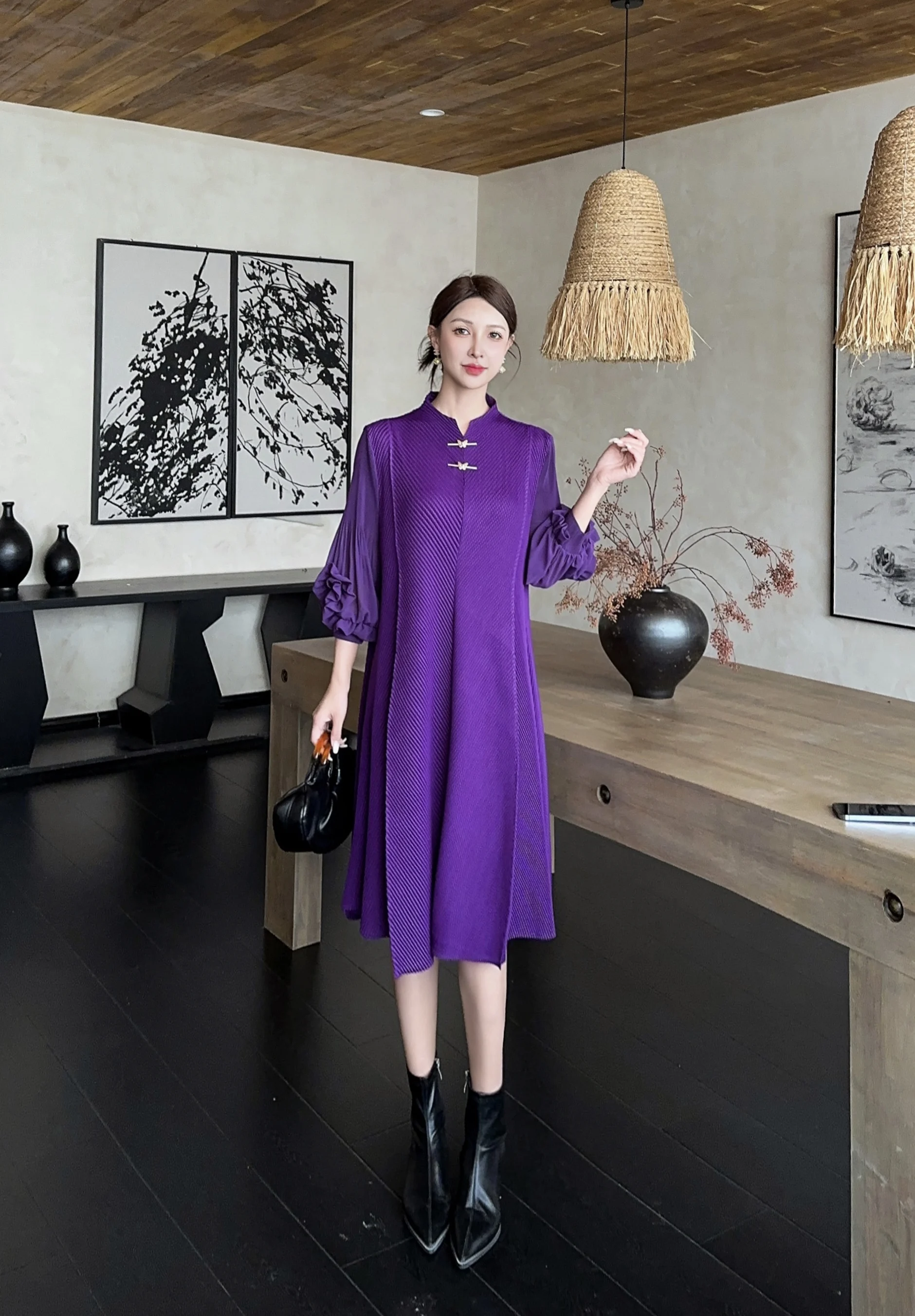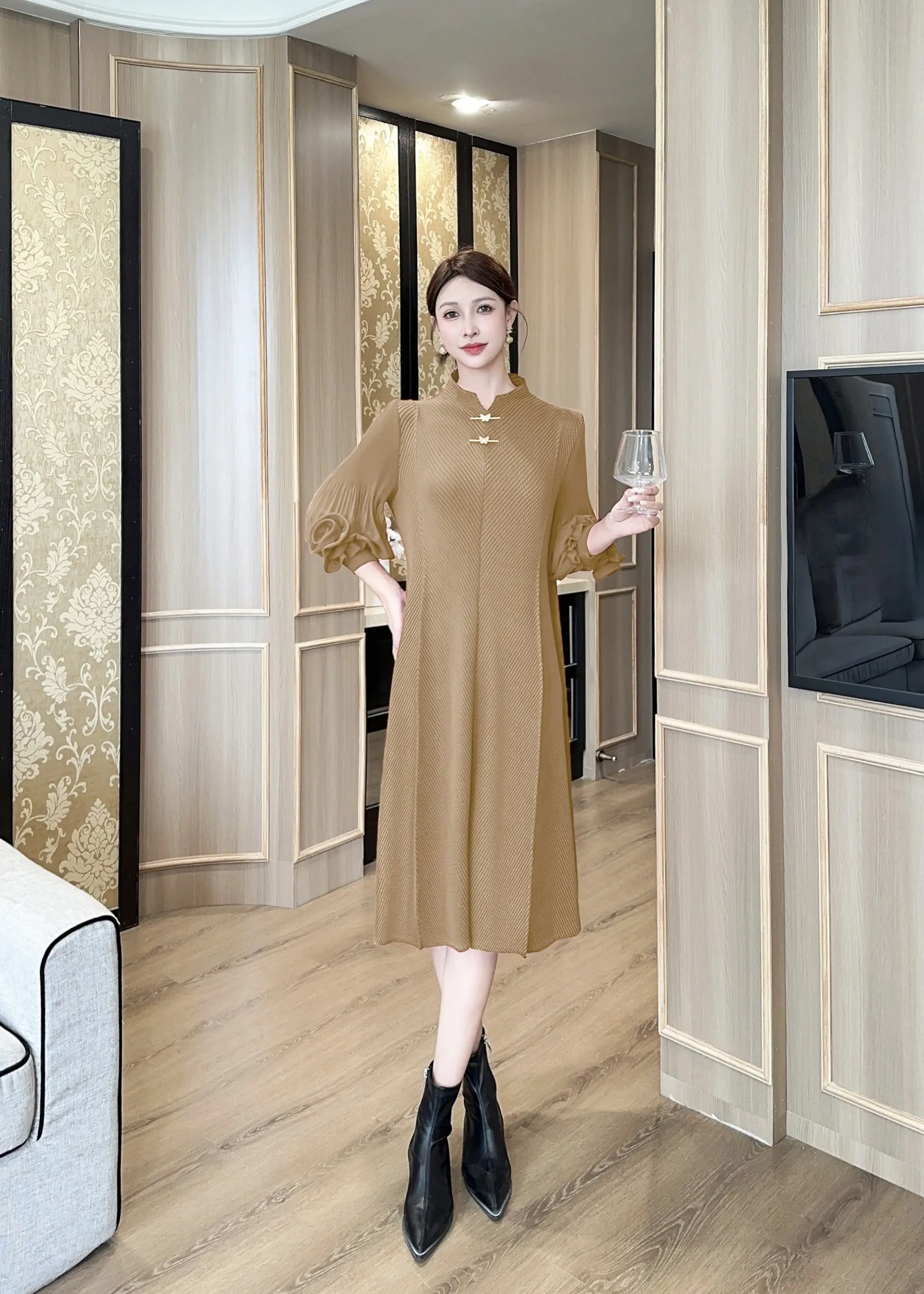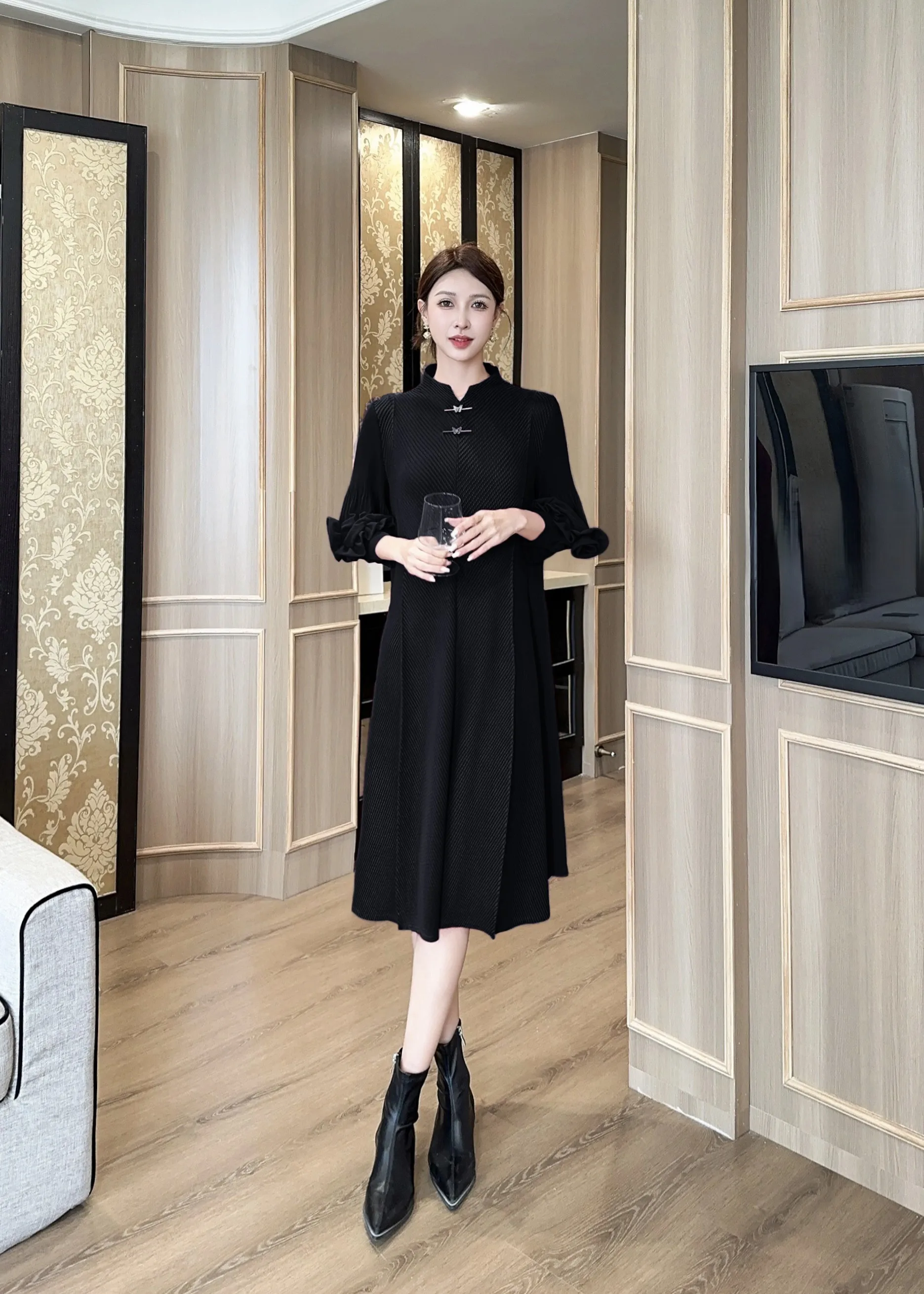 New Fish-scale Pleated Dress - Elastic and Form-fitting Oversized Dress with a High Collar