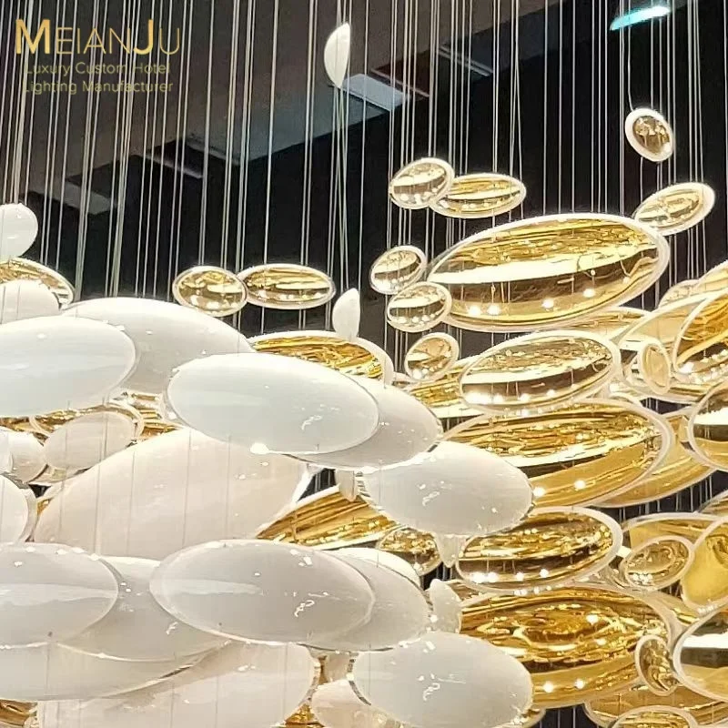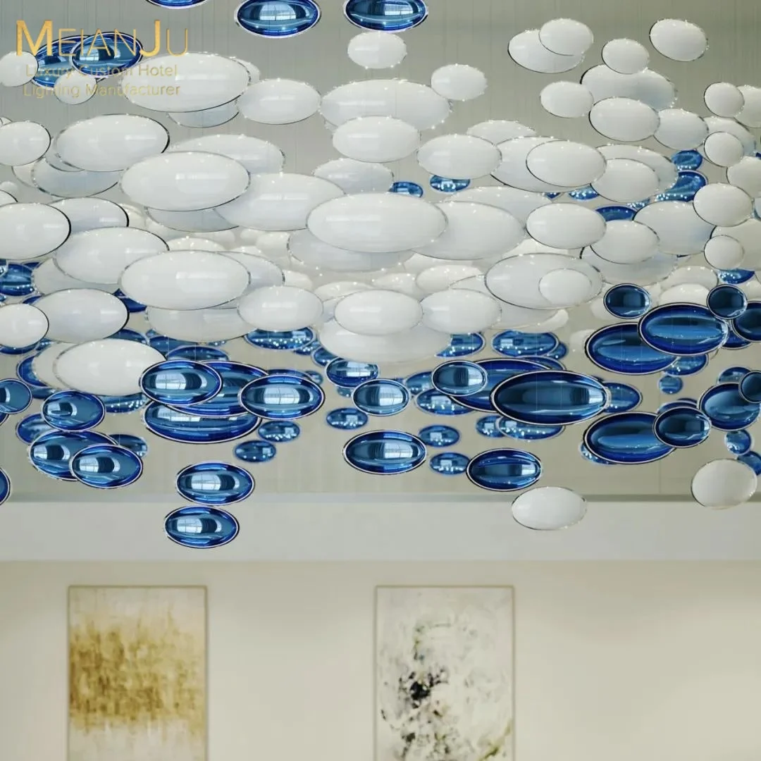 Customized Colorful Egg & Oval Shape Art Glass Chandelier Hotel Mall Cafe Corridor Hanging Pendant Lamp for Decorations