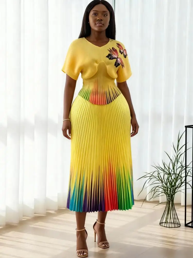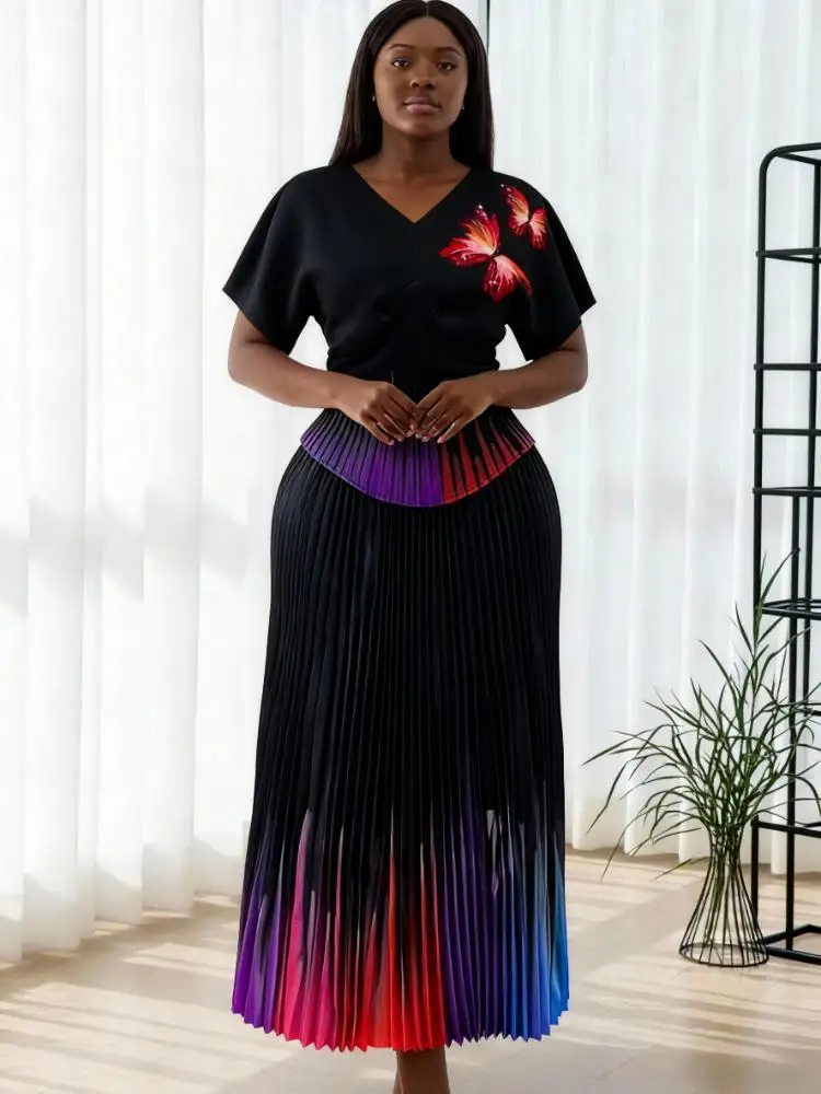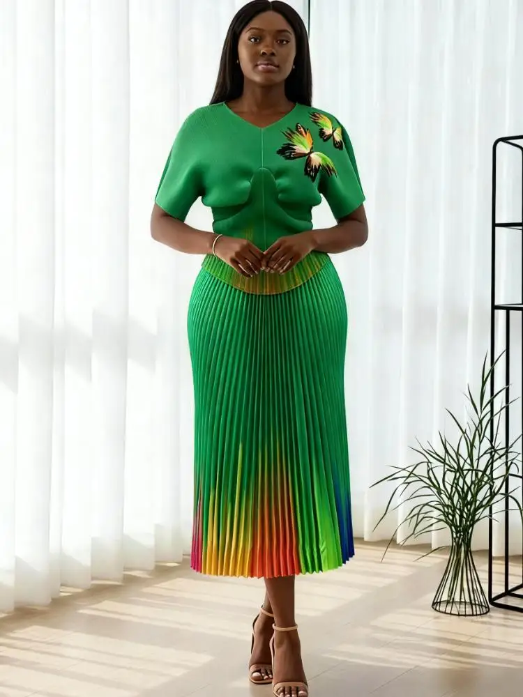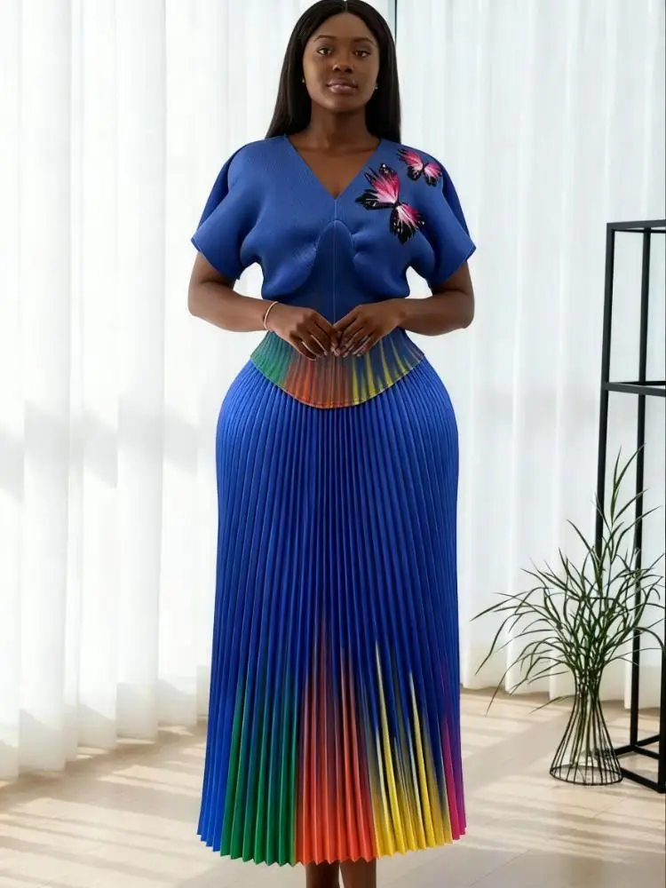 African Plus-size Women's Fashion Sets for Wholesale High-quality Printed Miyake Pleated Sets