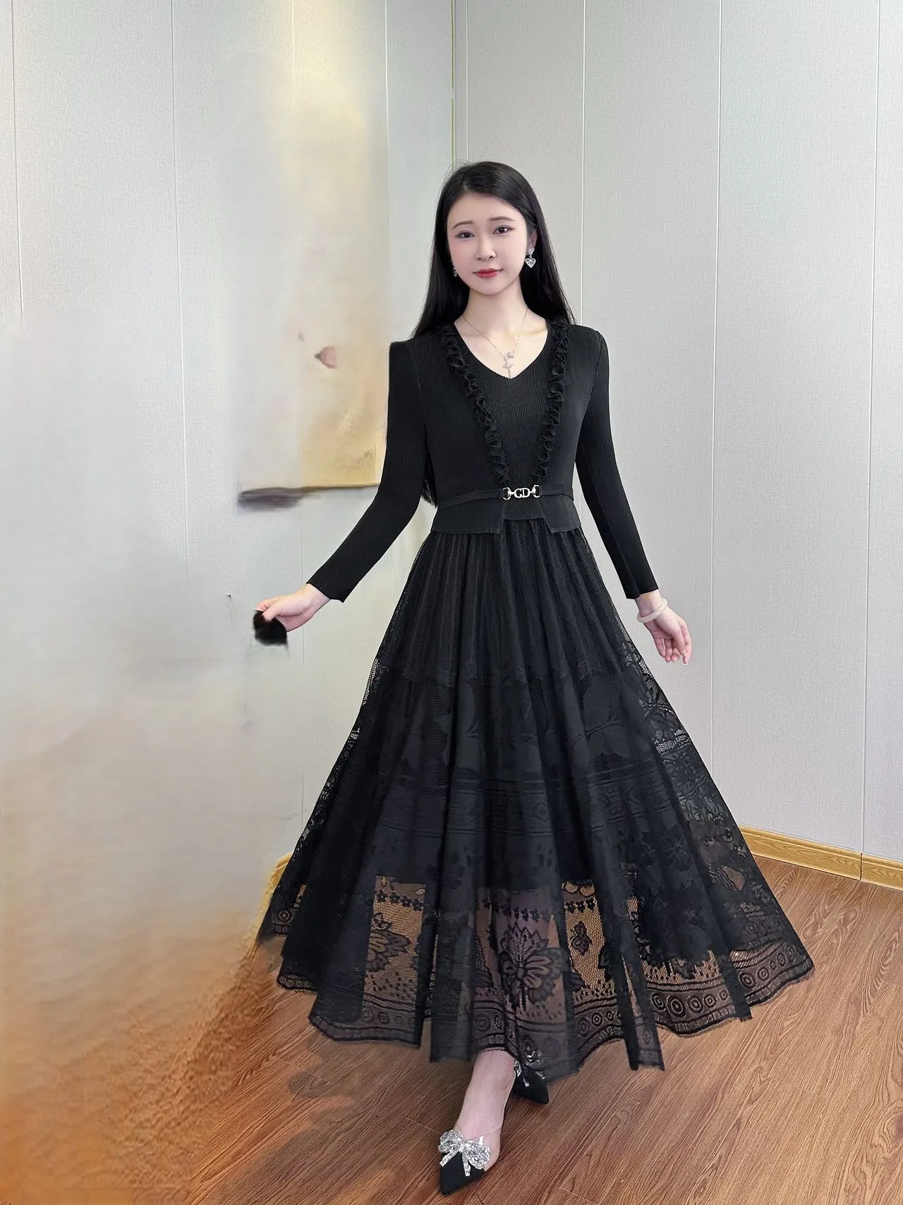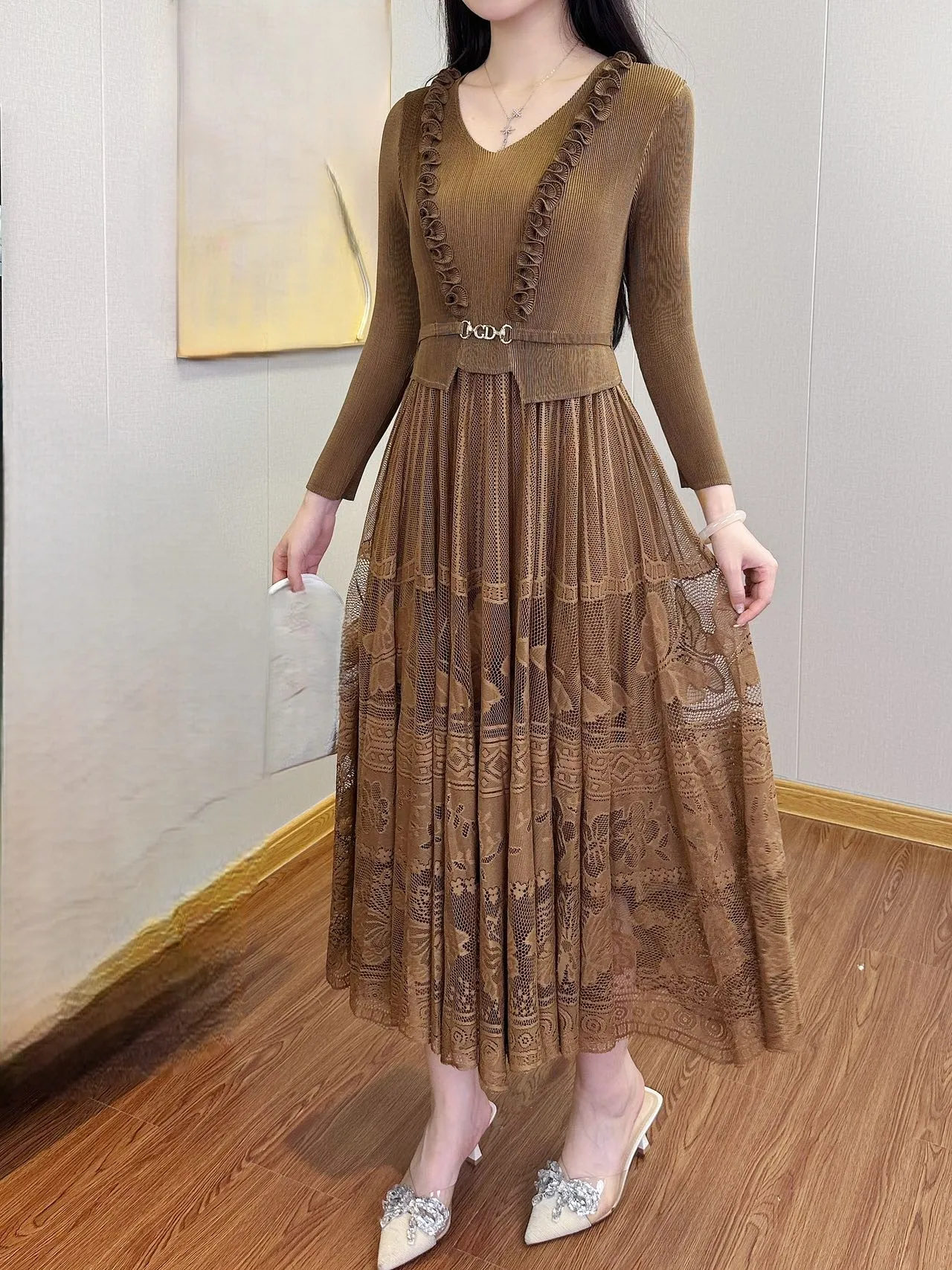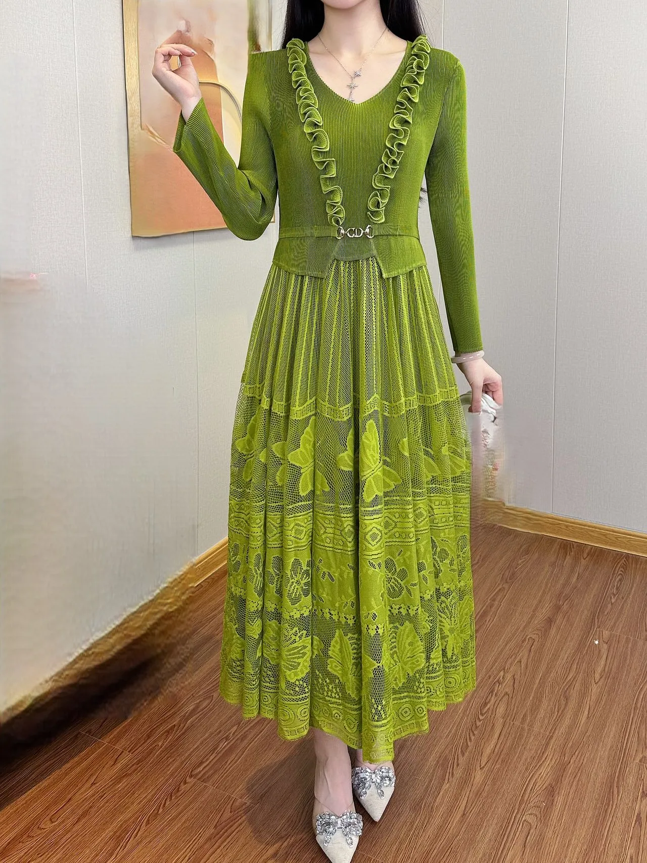 Summer Comfortable and Breathable Women's Large-size Dress in Solid Color - Slimming Pleated Dress
