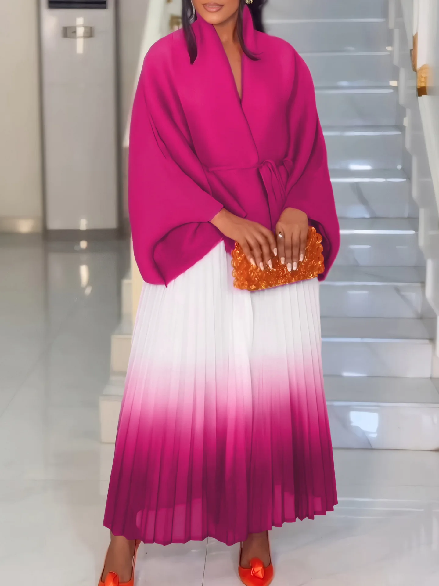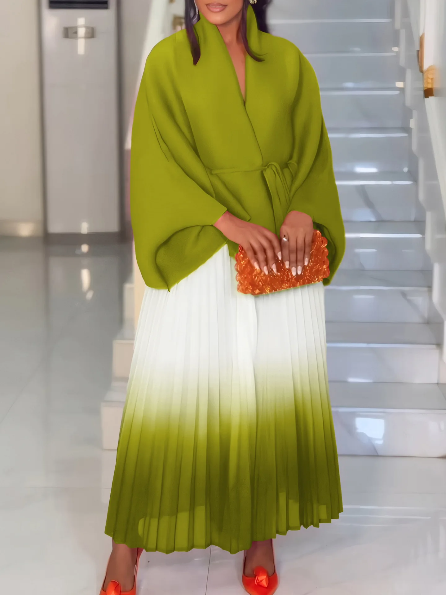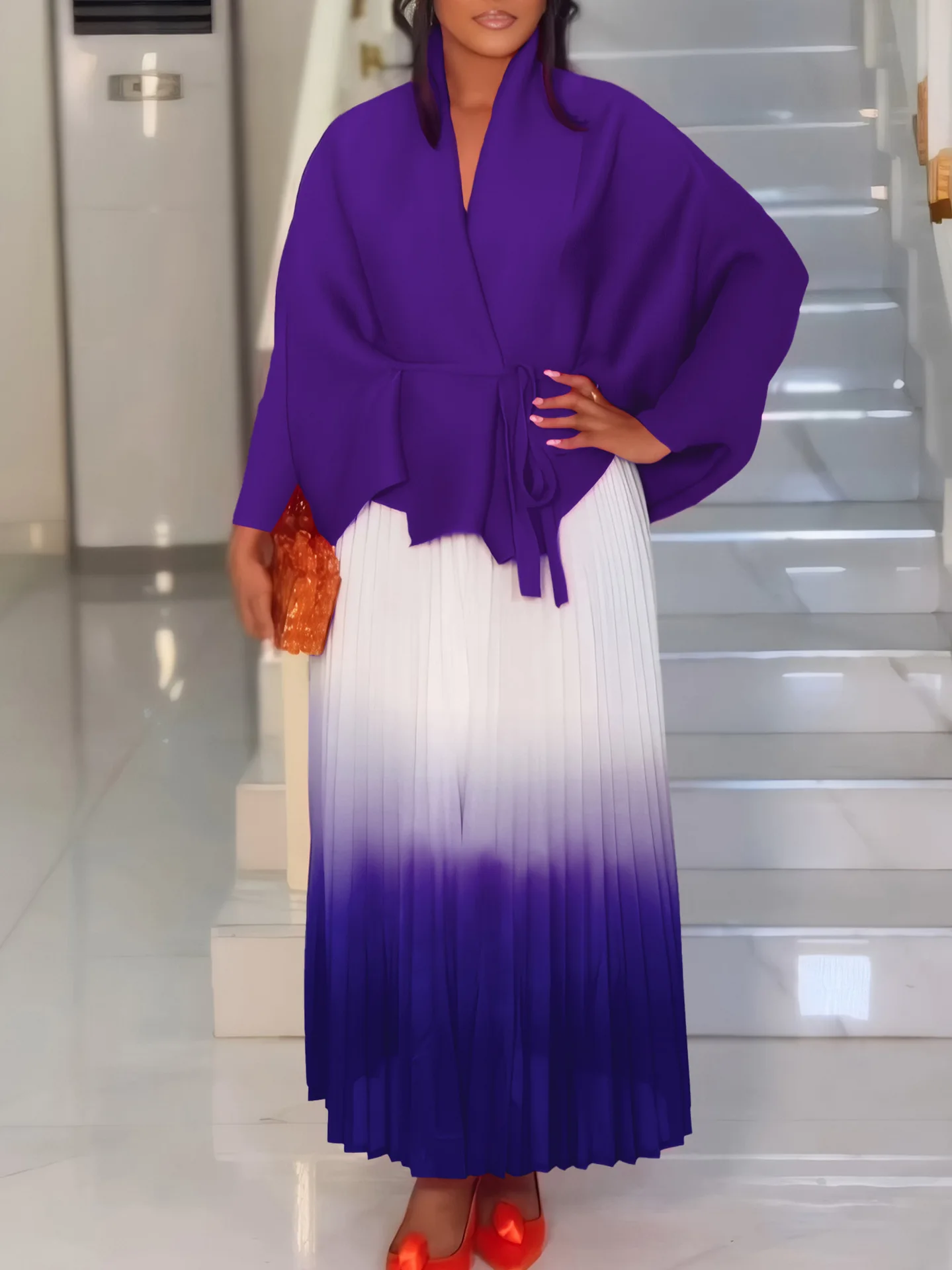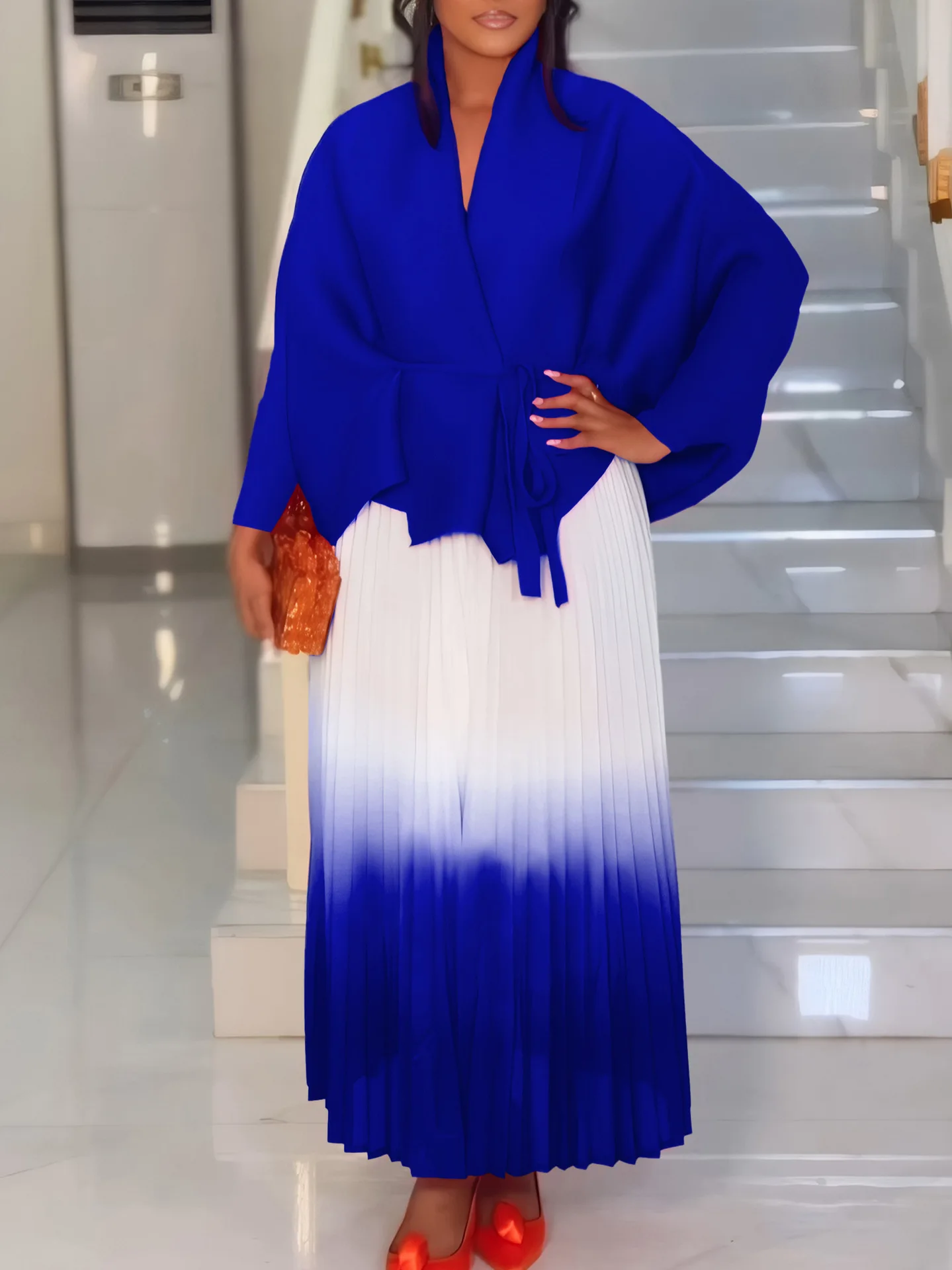 Fashionable V-neck Pleated Top Gradient Pleated Skirt Date Party Plus-size Pleated Set
