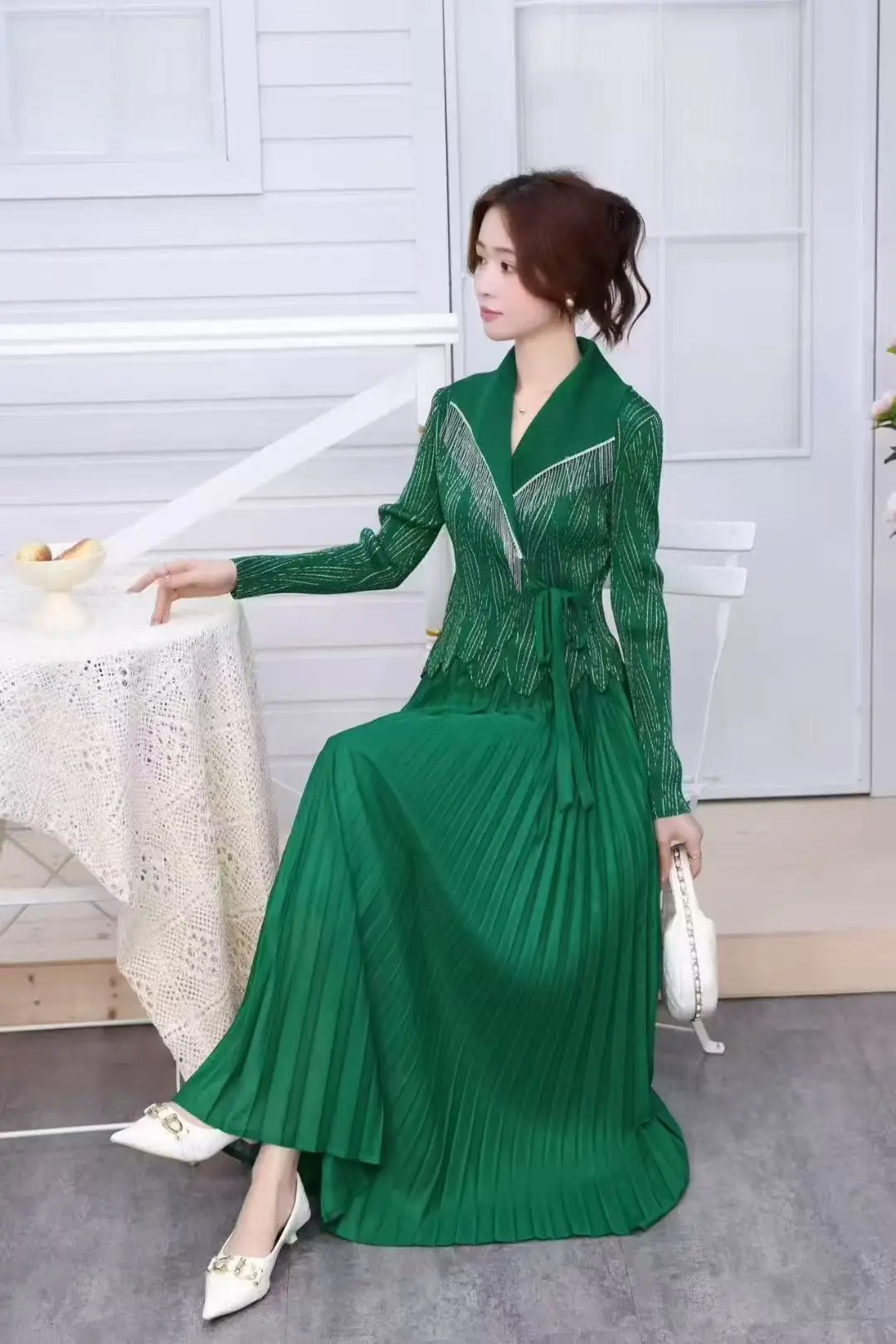 ZYHT 73902 Dark Green Blue Long Sleeve Simple Elegant Evening Dress Customize High End Women Clothing Manufacturer
